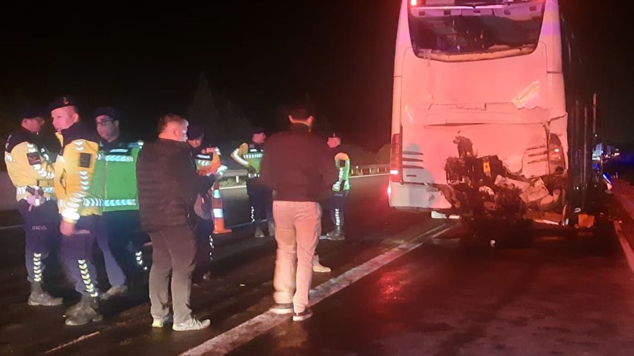 Bu sırada aynı yönde ilerleyen H.K. idaresindeki henüz plakası öğrenilemeyen tır, otobüse arkadan çarptı.