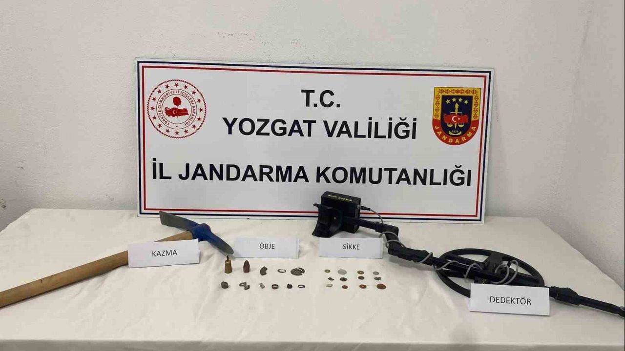 Edinilen bilgiye göre Akdağmadeni Jandarma Komutanlığı ekipleri define aranacağının bilgisini alarak harekete geçti. Ormanlık alanda define arama cihazıyla görülen Z.B. suçüstü yakalandı.