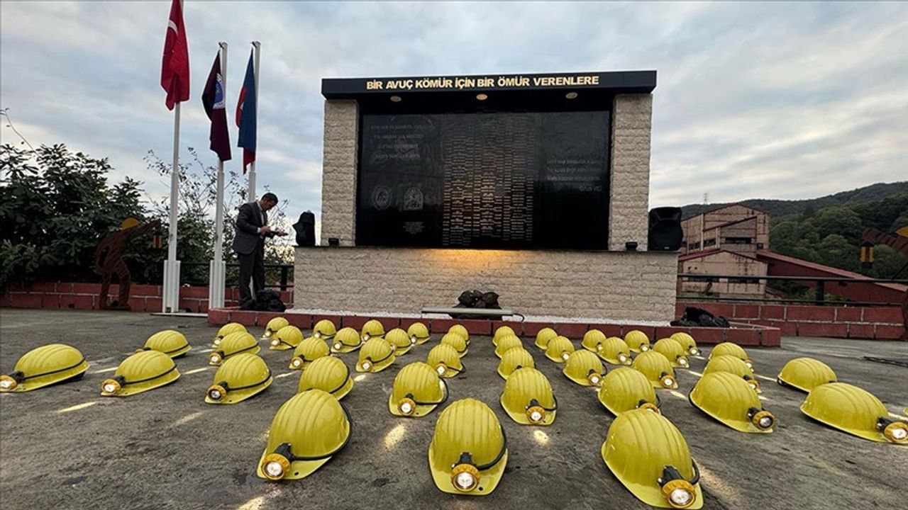 BARTIN(AA)-Bartın'ın Amasra ilçesindeki maden ocağında meydana gelen patlamada hayatını kaybeden işçiler için müessesedeki servis kuyusunun önünde anma töreni düzenlendi.