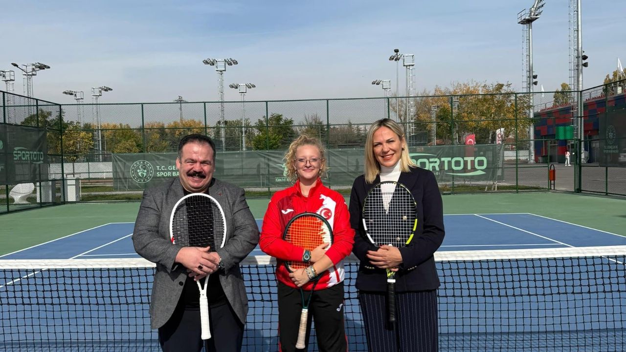 16 yaşındaki sporcu, Ankara’daki milli takım kampında hazırlıklarını sürdürüyor. Kampı ziyaret eden Türkiye İşitme Engelliler Spor Federasyonu Başkanı Dursun Gözel ile Türkiye Tenis Federasynu Başkanı Şafak Müderrisgil, genç yeteneğe başarılar diledi.