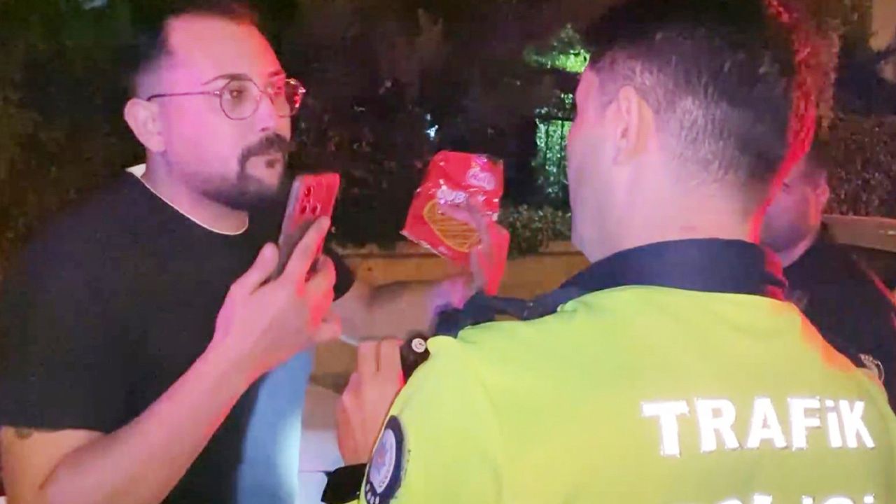 Aksaray’da direksiyon başında alkollü olarak yakalanan sürücü, polisin yarım saat zaman tanımasına rağmen alkolmetreye üflemeyi reddetti. "Artistlik yapıyorum" diyen sürücü, bir yandan kraker yedi, bir yandan da telefonla polis memurlarının görüntülerini kaydedip polislere zor anlar yaşattı. O anlar anbean kameralara yansıdı.