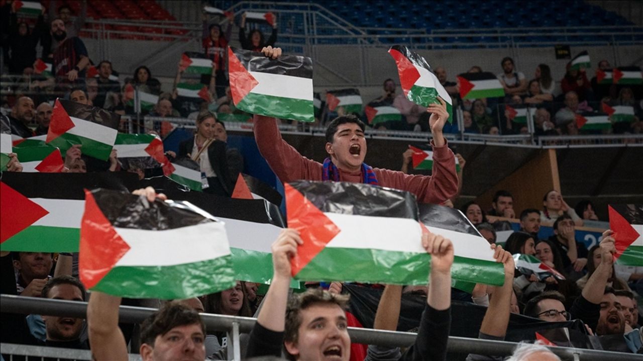 İSTANBUL(AA)-İsrail’in tüm spor organizasyonlarından men edilmesi yönünde küresel çapta çağrılar yapılırken, Avrupa Ligi’nde dün oynanan Hapoel Tel Aviv - Maccabi Tel Aviv basketbol karşılaşmasında 7 Ekim 2023’te hayatını kaybeden İsrail vatandaşları için saygı duruşunda bulunulması dikkati çekti.