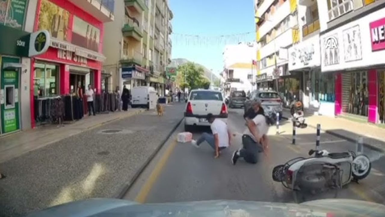 Öte yandan kaza anı çevredeki bir iş yerinin güvenlik kamerasınca kaydedildi.