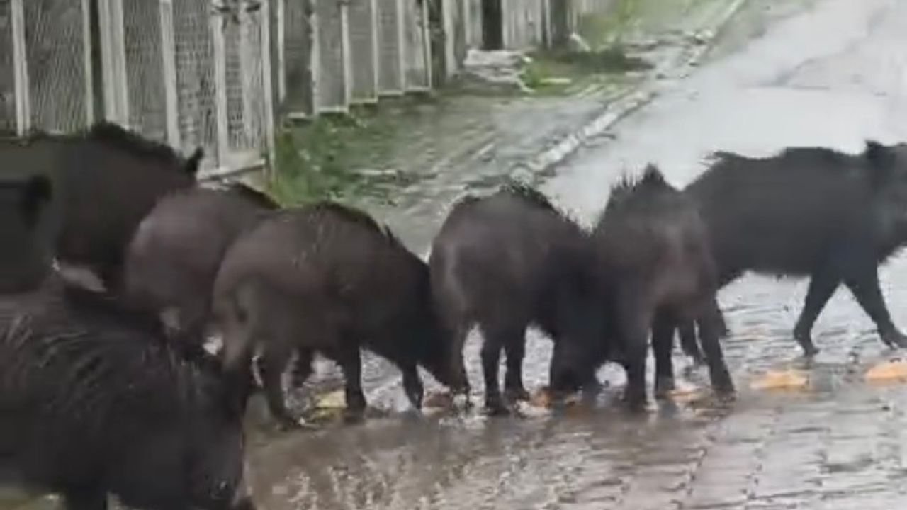 Hiç kimseye zarar vermeden Son Durak mevkiinde çöp konteynerlerinin çevresinde, park halindeki araçların arasında yiyecek arayan yaban domuzlarının görüntüleri sosyal medya mecralarında da adeta viral oldu.