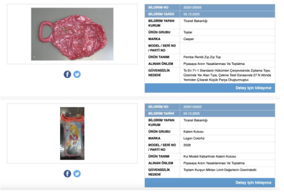 Söz konusu ürünlerin satışları durduruldu ve piyasada mevcut olanların toplatılmasına karar verildi.