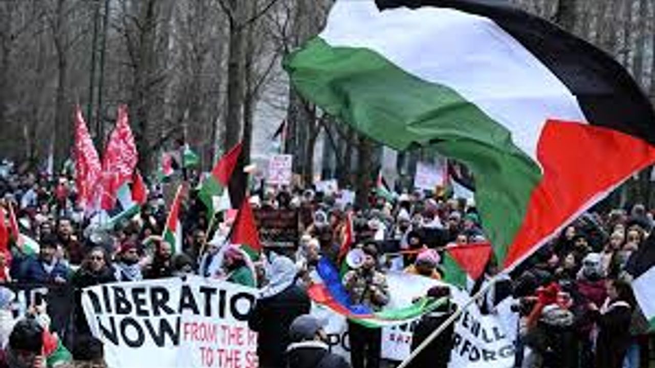 Başkentteki Kuzey Tren İstasyonu'nda bir araya gelen binlerce gösterici, Avrupa Birliği (AB) ile İsrail arasındaki Ortaklık Anlaşması'nın derhal askıya alınmasını talep etti.