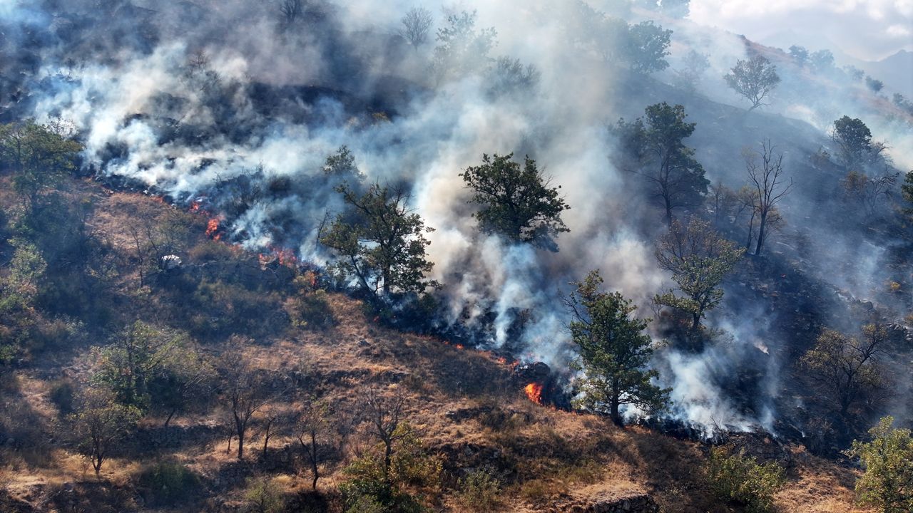 Alınan bilgiye göre, ilçeye bağlı Ali Dağı yamaçlarında kimliği henüz belirlenemeyen kişi ya da kişilerce biber ve patlıcan közlemek için ateş yakıldı.