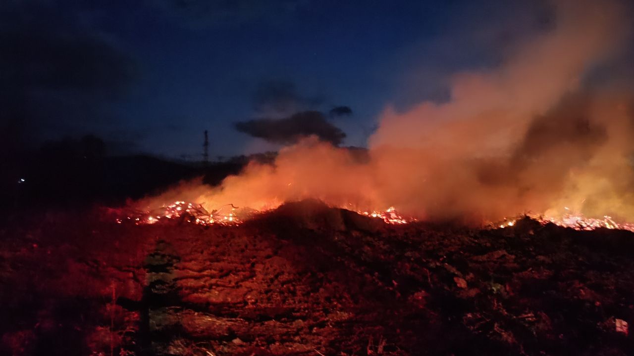 Bölgenin çamurlu olması nedeniyle belediye ekiplerine ait kepçelerle yanan alanın üzerine toprak dökülmesi sonucu yangın söndürüldü.