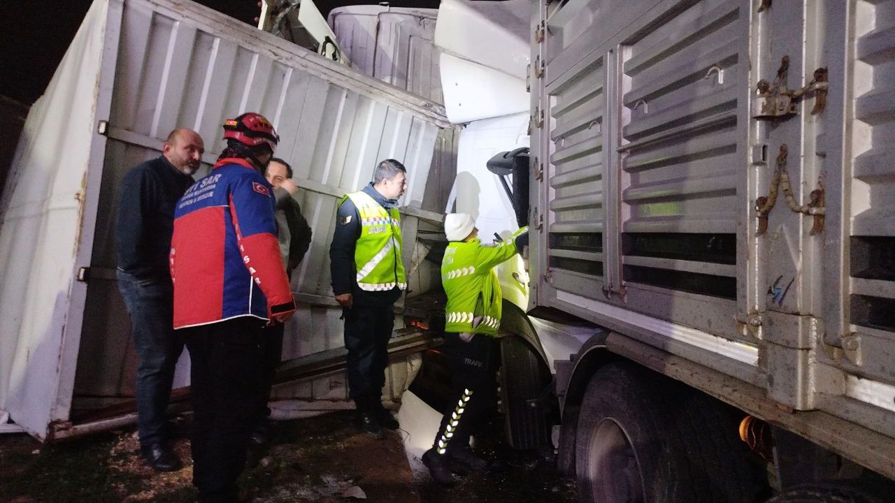 Çarpışmanın etkisiyle kontrolden çıkan Ç.Y. yönetimindeki tır, emniyet şeridinde park halindeki bir kamyona çarparak durdu.