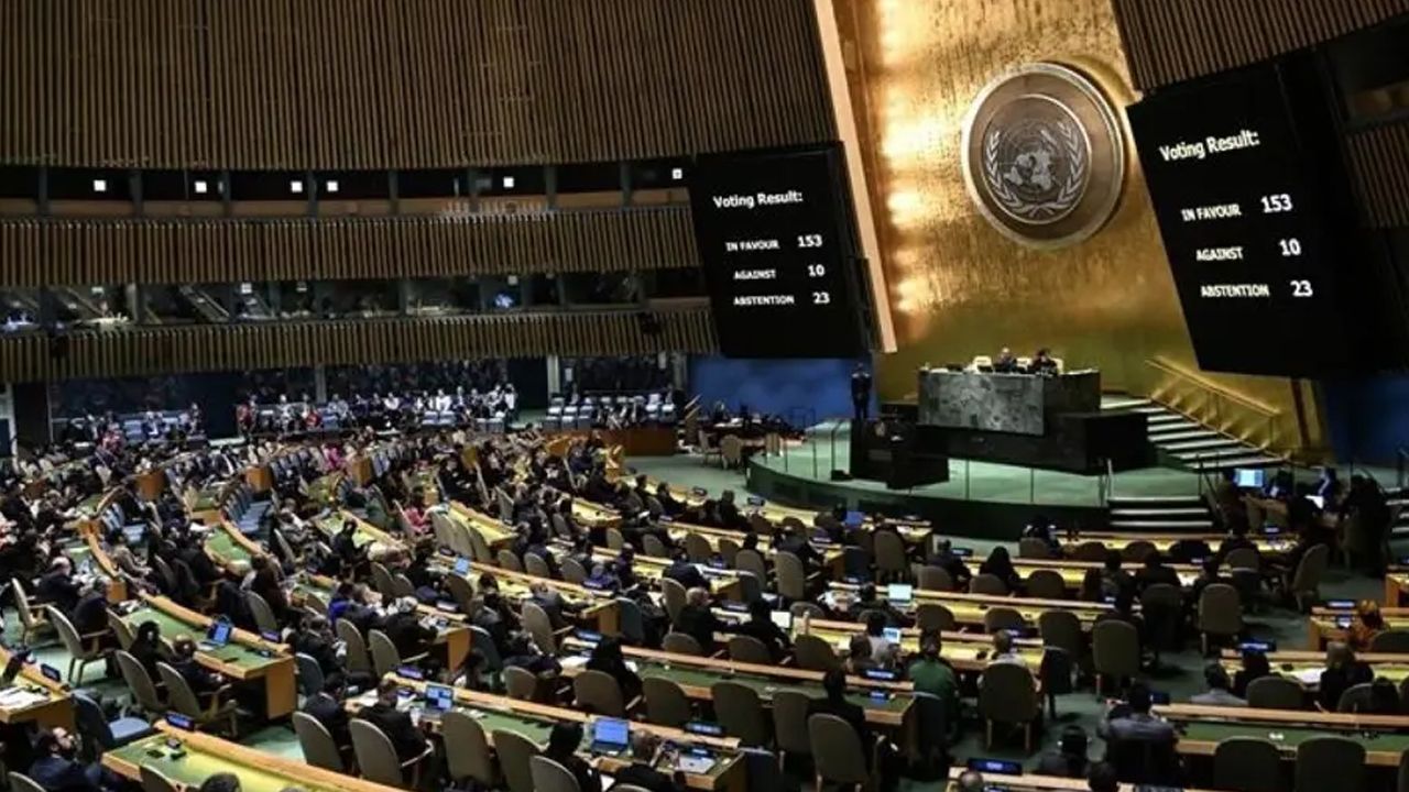 Birleşmiş Milletler (BM) Genel Kurulu, BM'nin Filistin'e karşı sorumluluğunu yeniden teyit eden, İsrail’in 1967 sonrası işgaline son verilmesi ve iki devletli çözümün desteklenmesini talep eden karar tasarısını kabul etti.