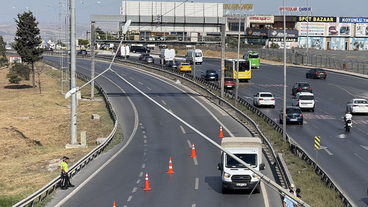 İSTANBUL(İHA)-Olay, saat 09.50 sıralarında E-5 karayolu Büyükçekmece mevki Beylikdüzü istikametinde yaşandı. Edinilen bilgilere göre refüjde bulunan aydınlatma direklerinden biri şiddetli rüzgarda yan yattı. Durumu gören sürücüler ekiplere haber verdi. Ekiplerin çalışması nedeniyle aydınlatma direğinin bulunduğu yol trafiğe kapatıldı. Trafik akışı yan yoldan sağlanırken, direğin kaldırılmasından sonra yeniden trafiğin açılacağı öğrenildi.