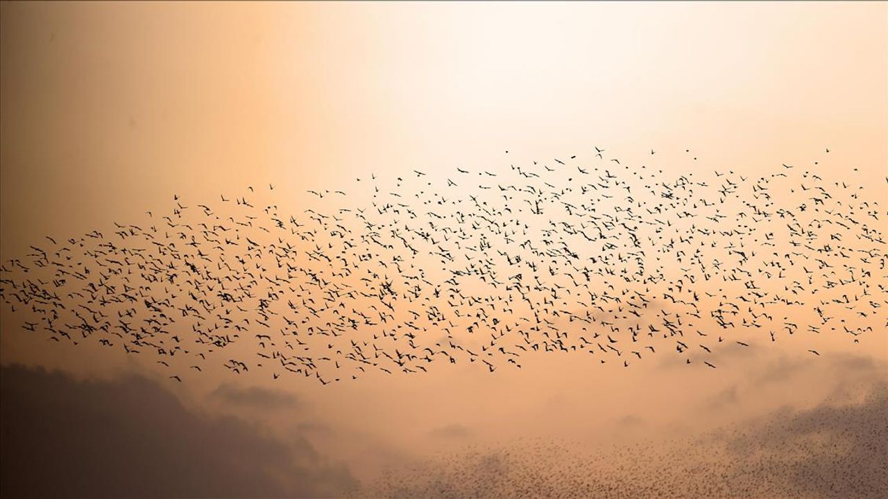 Gün batımı saatlerinde Çankırı semalarında ortaya çıkan sığırcık kuşları, dakikalarca gökyüzünde dans etti.