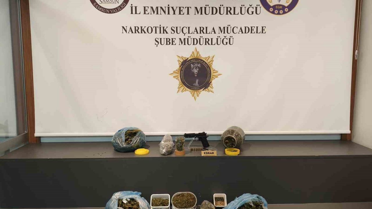 Samsun İl Emniyet Müdürlüğü Narkotik Suçlarla Mücadele Şube Müdürlüğü ekiplerince uyuşturucu madde ticareti yaptığı değerlendirilen şahıslara yönelik İlkadım ilçesinde operasyon düzenlendi. Belirlenen adreste ve çatı katında yapılan aramalarda 2 kilo 40 gram esrar, 100 gram esrar tohumu, 1 ruhsatsız tabanca ve 7 tabanca fişeği ele geçirildi. Şüpheli A.D. (55) yakalanarak gözaltına alındı. Olayla ilgili soruşturma çok yönlü olarak sürüyor.