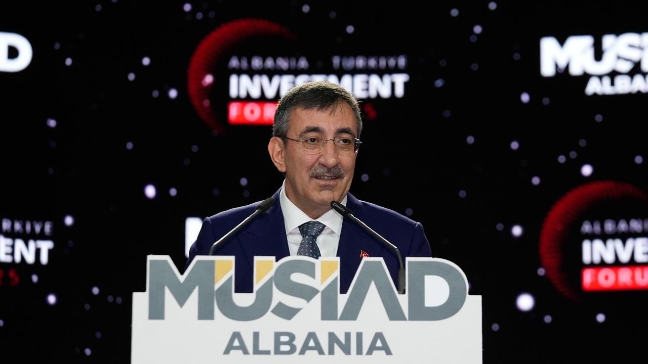 Cumhurbaşkanı Yardımcısı Cevdet Yılmaz, Arnavutluk’ta MÜSİAD ve Arnavutluk Yatırım Geliştirme Ajansı (AIDA) iş birliğiyle düzenlenen Türkiye–Arnavutluk Yatırım Forumunda iş dünyasının temsilcileriyle bir araya geldi.