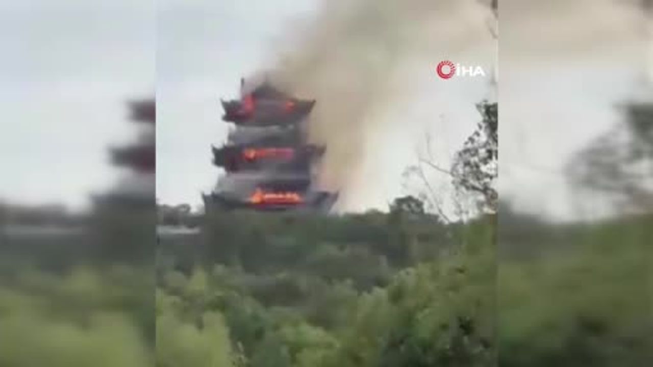 Çin'in Suzhou kentindeki bin 500 yıllık Yongqing Tapınağı alevlere teslim oldu.