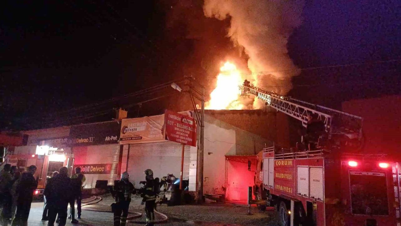 ÇORUM(İHA)-Olay, Aşağı Sanayi Sitesi Tarım Caddesi ile Çelik 3. Sokak kesişiminde meydana geldi. Edinilen bilgiye göre, sokak üzerinde bulunan bir lastik tamirhanesinde yangın çıktı. Yangını gören vatandaşlar durumu 112 Acil Çağrı Merkezine bildirdi. İhbar üzerine olay yerine itfaiye ve polis ekipleri sevk edildi. Olay yerine gelen itfaiye ekipleri, yangını söndürmek için çalışma başlattı.