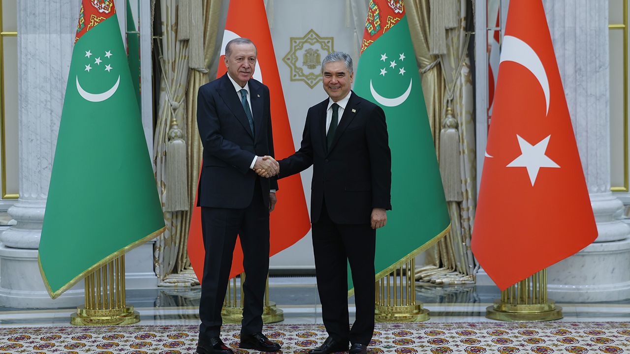 Cumhurbaşkanı Recep Tayyip Erdoğan Türkmenistan'a geldi. Aşkabat Uluslararası Havalimanı'nda Türkmenistan Bakanlar Kurulu Başkan Yardımcısı Mammethan Çakıyev tarafından karşılanan Erdoğan ve Emine Erdoğan, ardından Türkmenistan Halk Maslahatı Başkanı Gurbanguli Berdimuhammedov'la bir araya geldi.