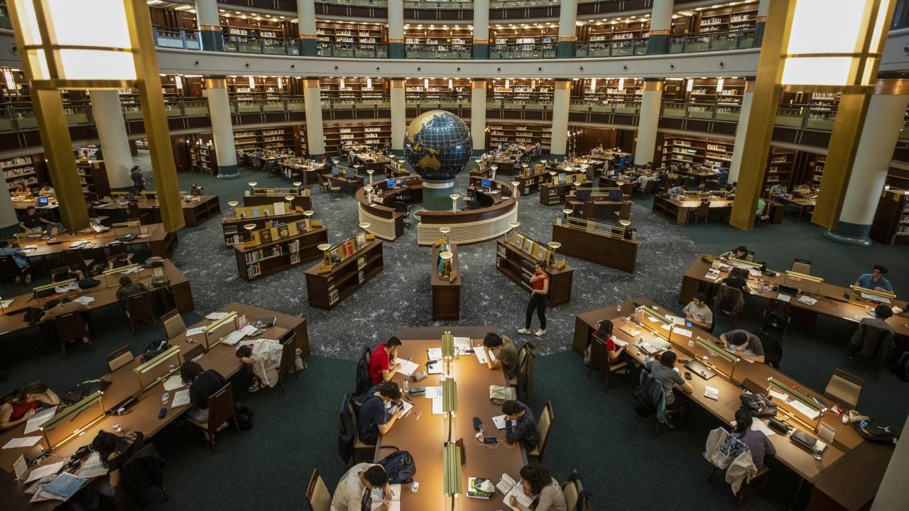 Cihannüma Salonu'nda 100'ün üzerinde ülkeye ait, 134 farklı dilden kitaplar okuyucuların hizmetine sunuluyor.