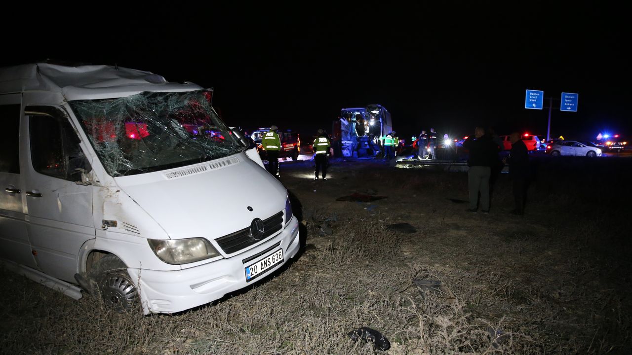 A.A. idaresindeki 26 AJS 579 plakalı Denizli'den İstanbul'a giden otobüs, Denizli-Çivril kara yolu döner kavşakta O.Y'nin kullandığı 20 ANS 636 plakalı minibüs ile çarpıştı.