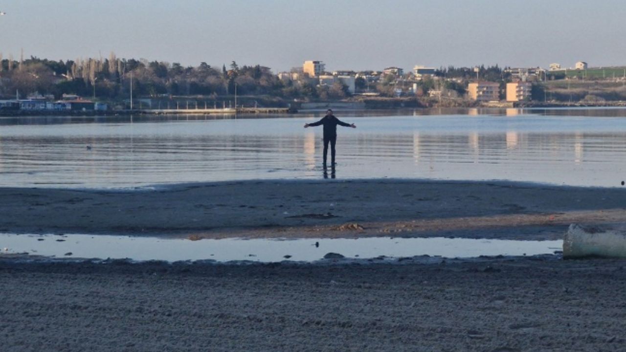 Marmara Ereğlisi sahilinde Marmara Denizi kıyıdan yaklaşık 20 metreye kadar geri çekildi.