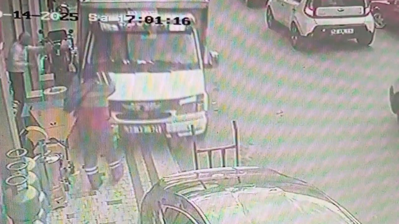 Öte yandan, kaza anı bir iş yerinin güvenlik kamerasına yansıdı. Görüntülerde, kamyonet sürücüsünün kaldırıma çıktığını gören çevredeki esnafın paniklediği görüldü.