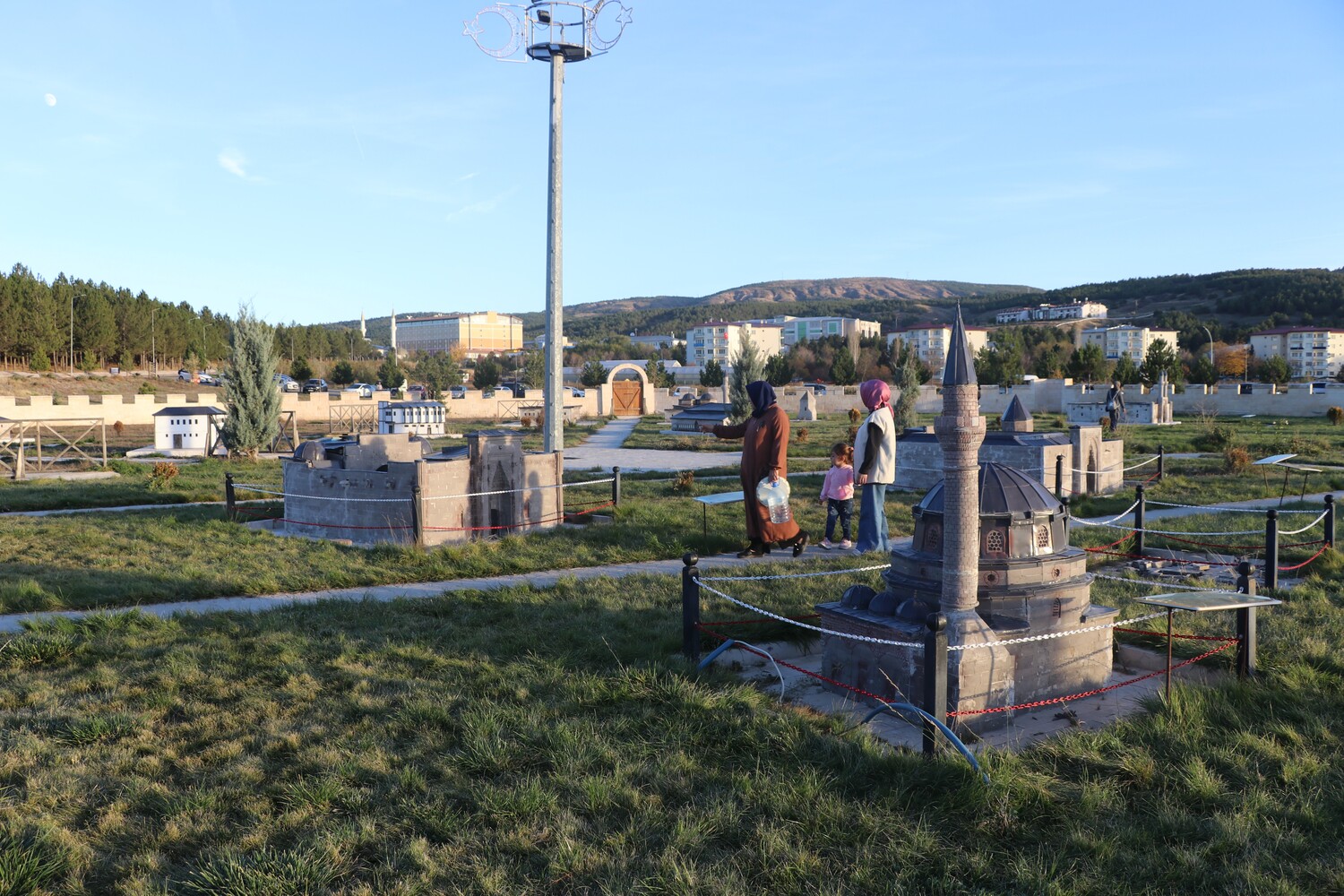 Ziyaretçiler Minia Sivas'ta tüm eserleri bir arada kolay bir şekilde görüyor. Aileleriyle birlikte alana giden ziyaretçiler, minyatürler ile hatıra fotoğrafı çektiriyor.