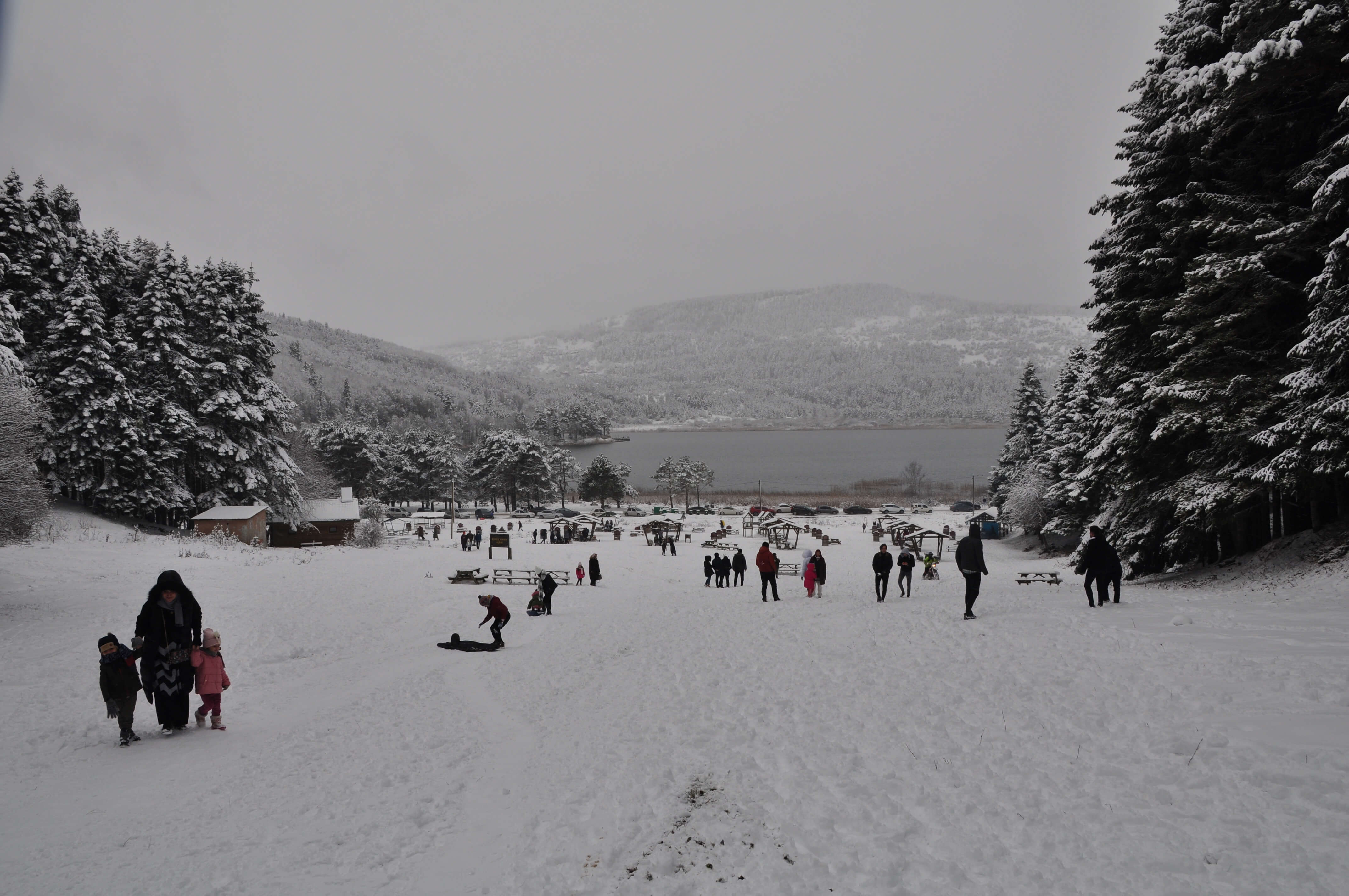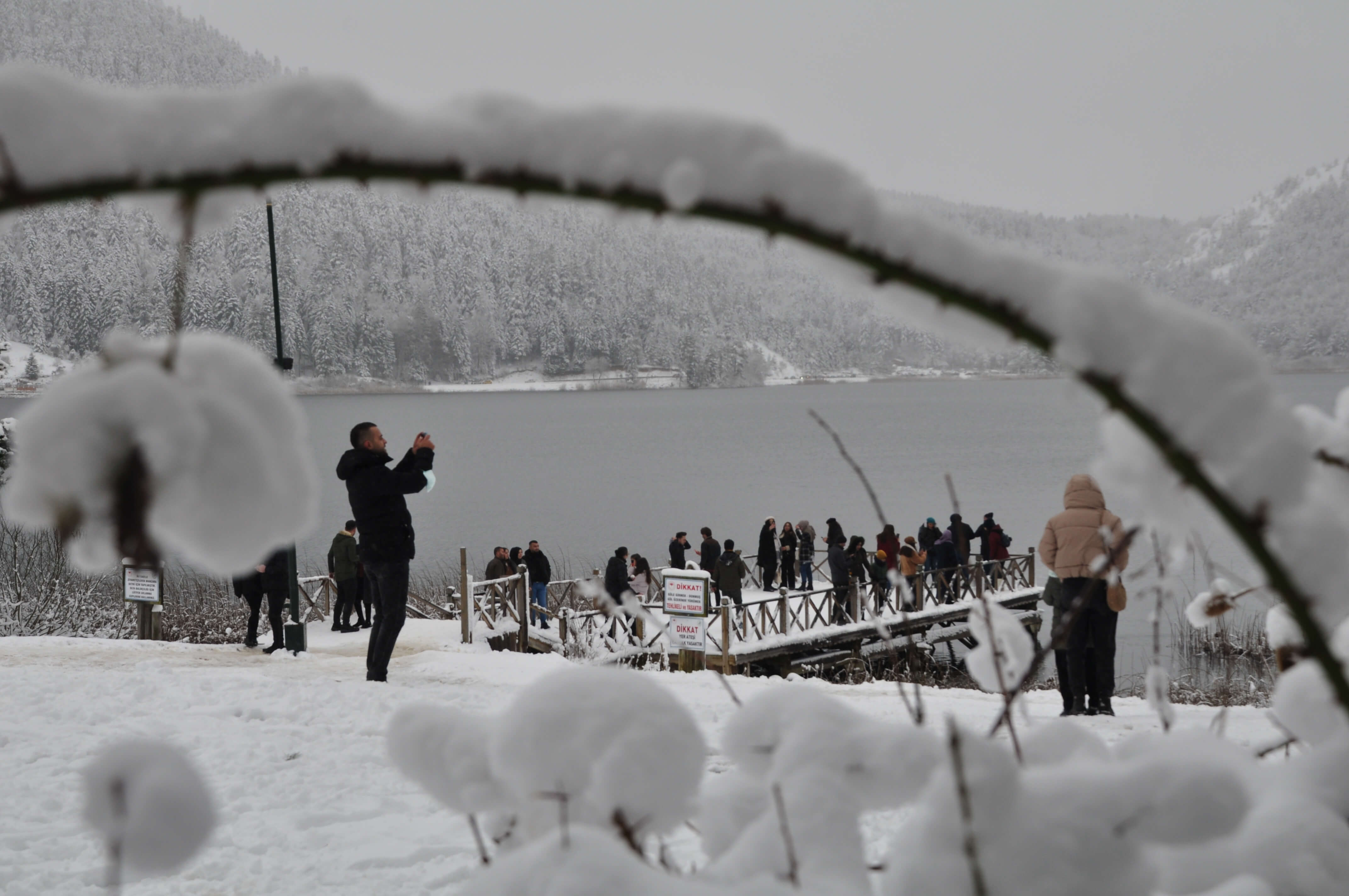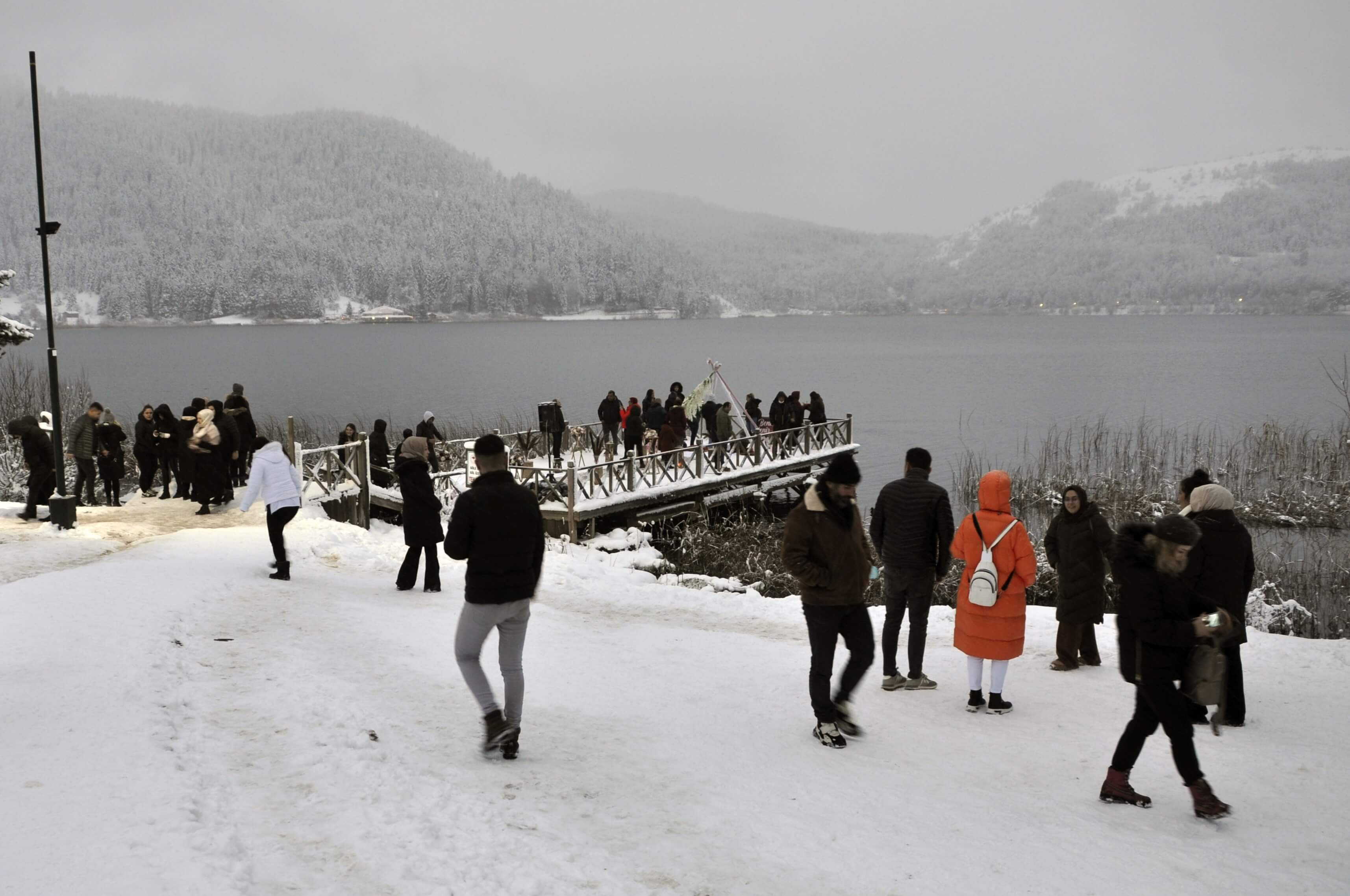 Beyaz örtüyle kaplanan Abant ve Gölcük'e ziyaretçi akını