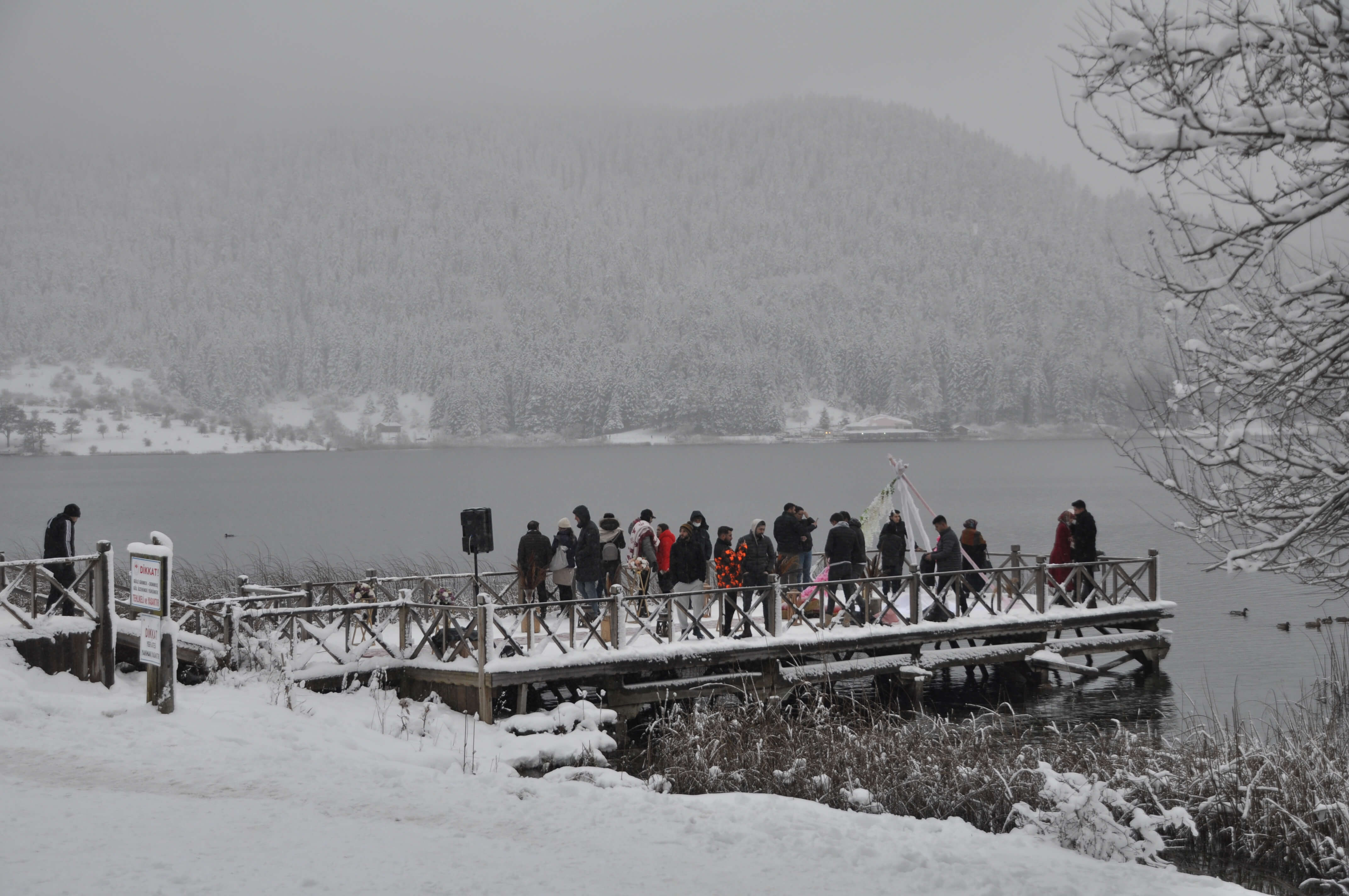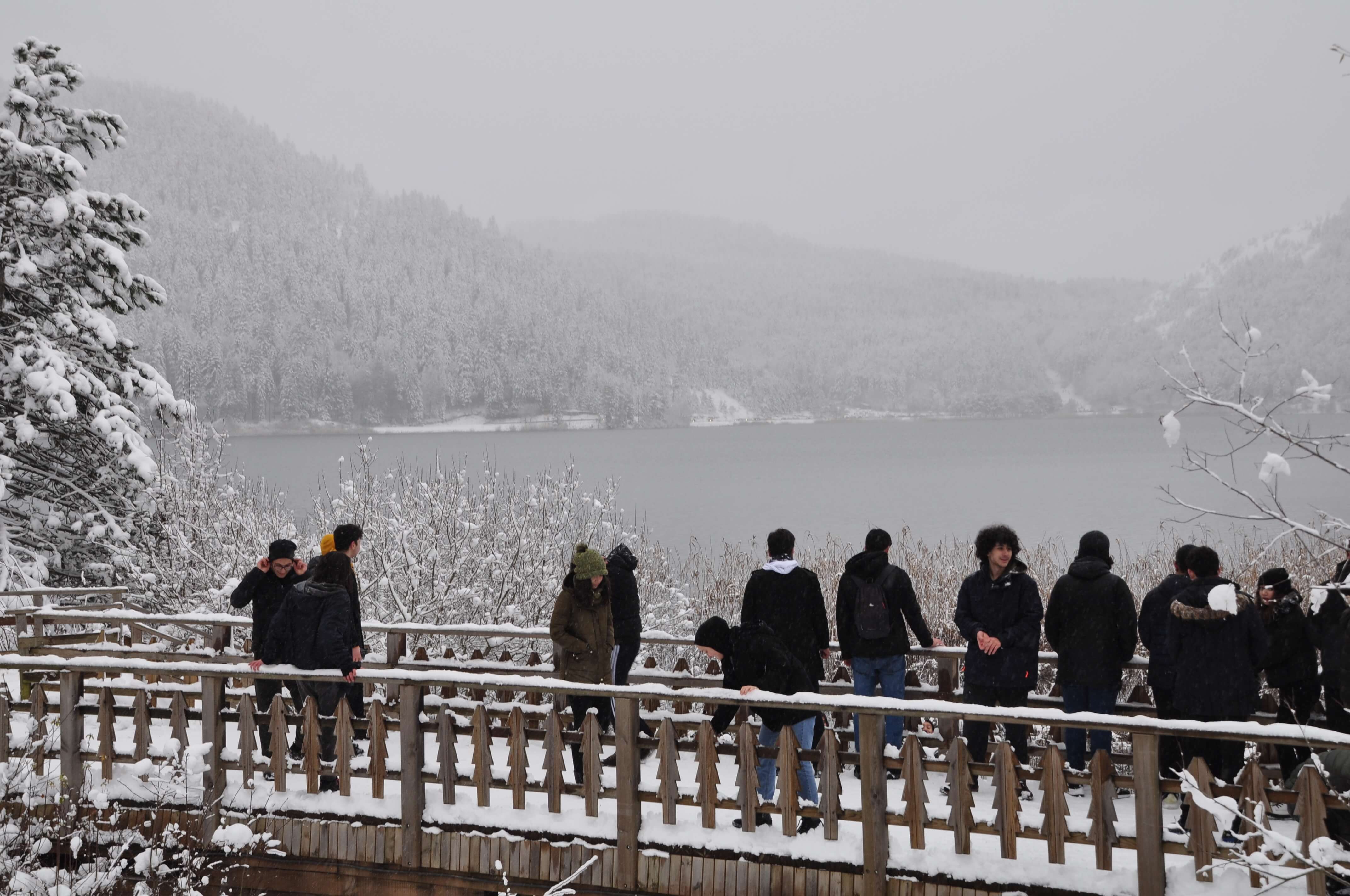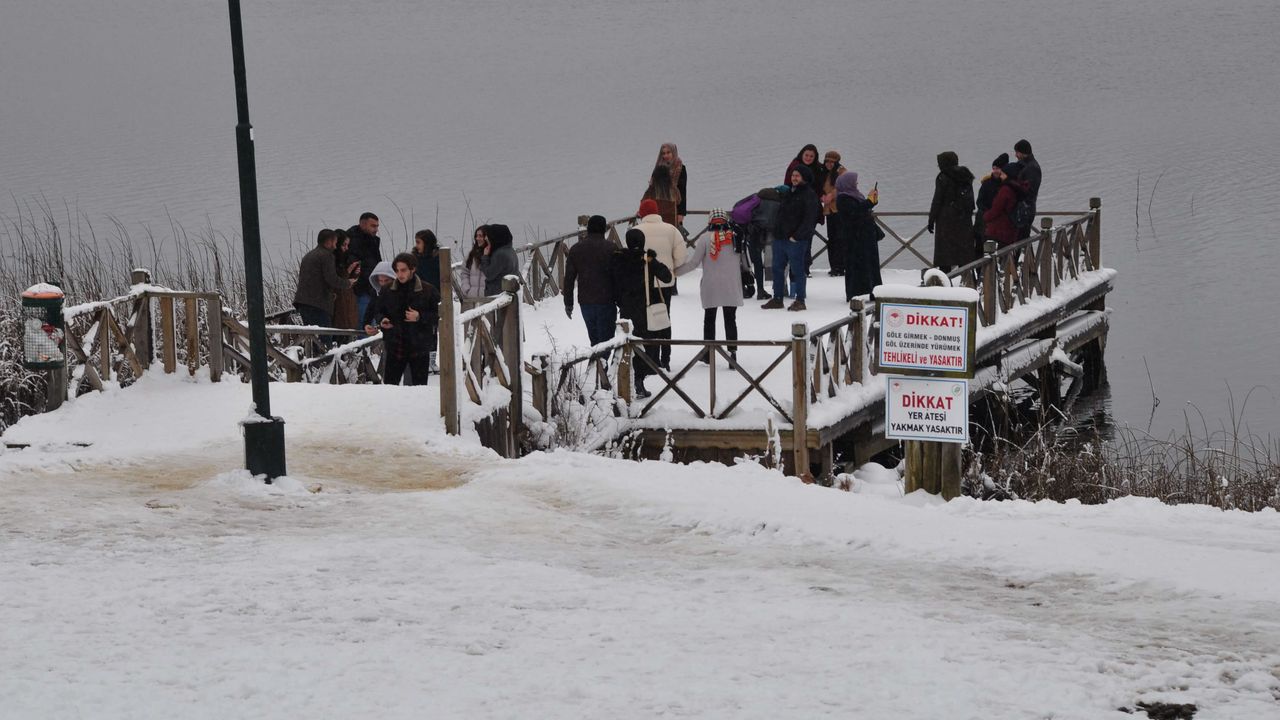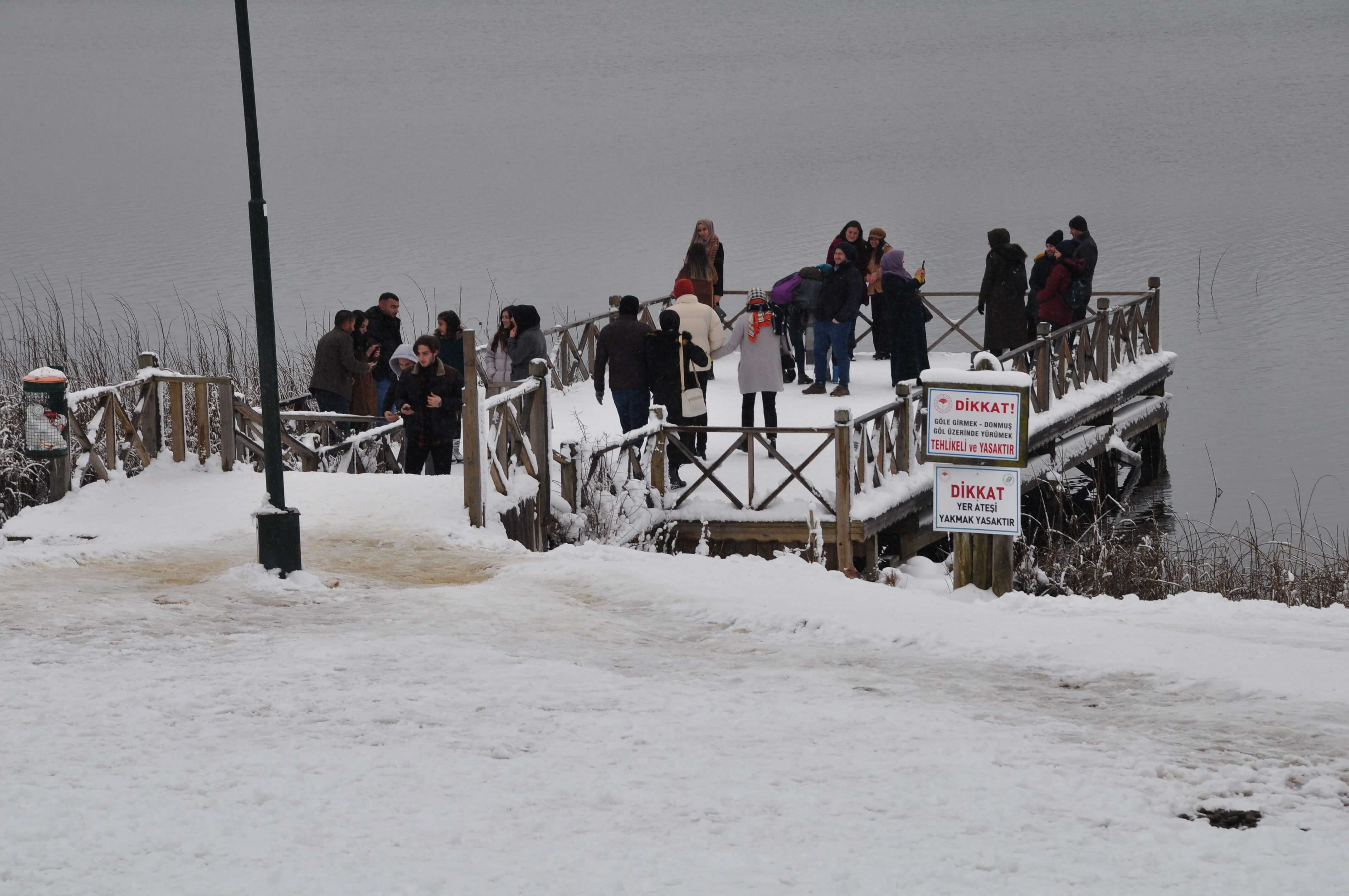 Beyaz örtüyle kaplanan Abant ve Gölcük'e ziyaretçi akını
