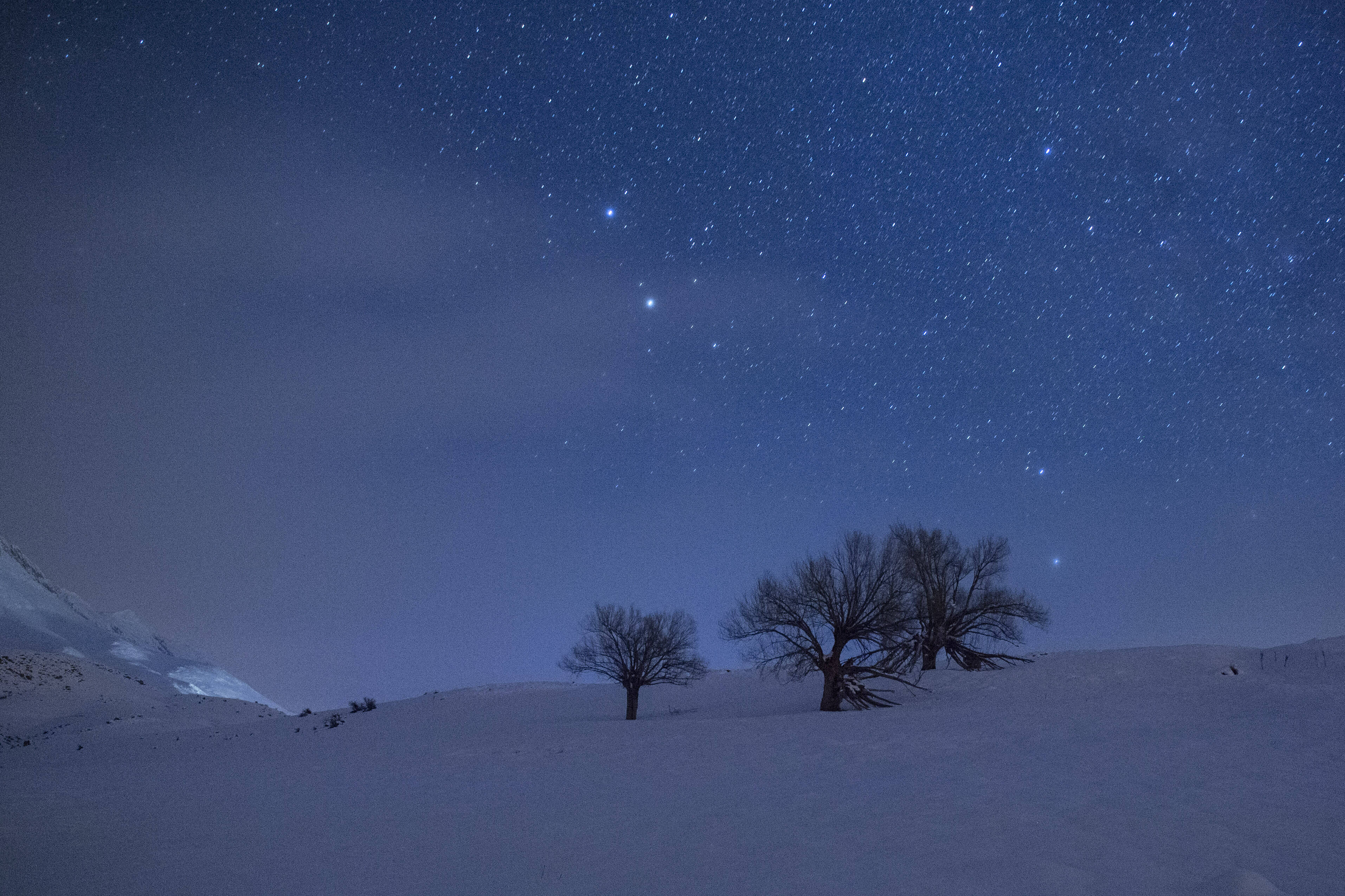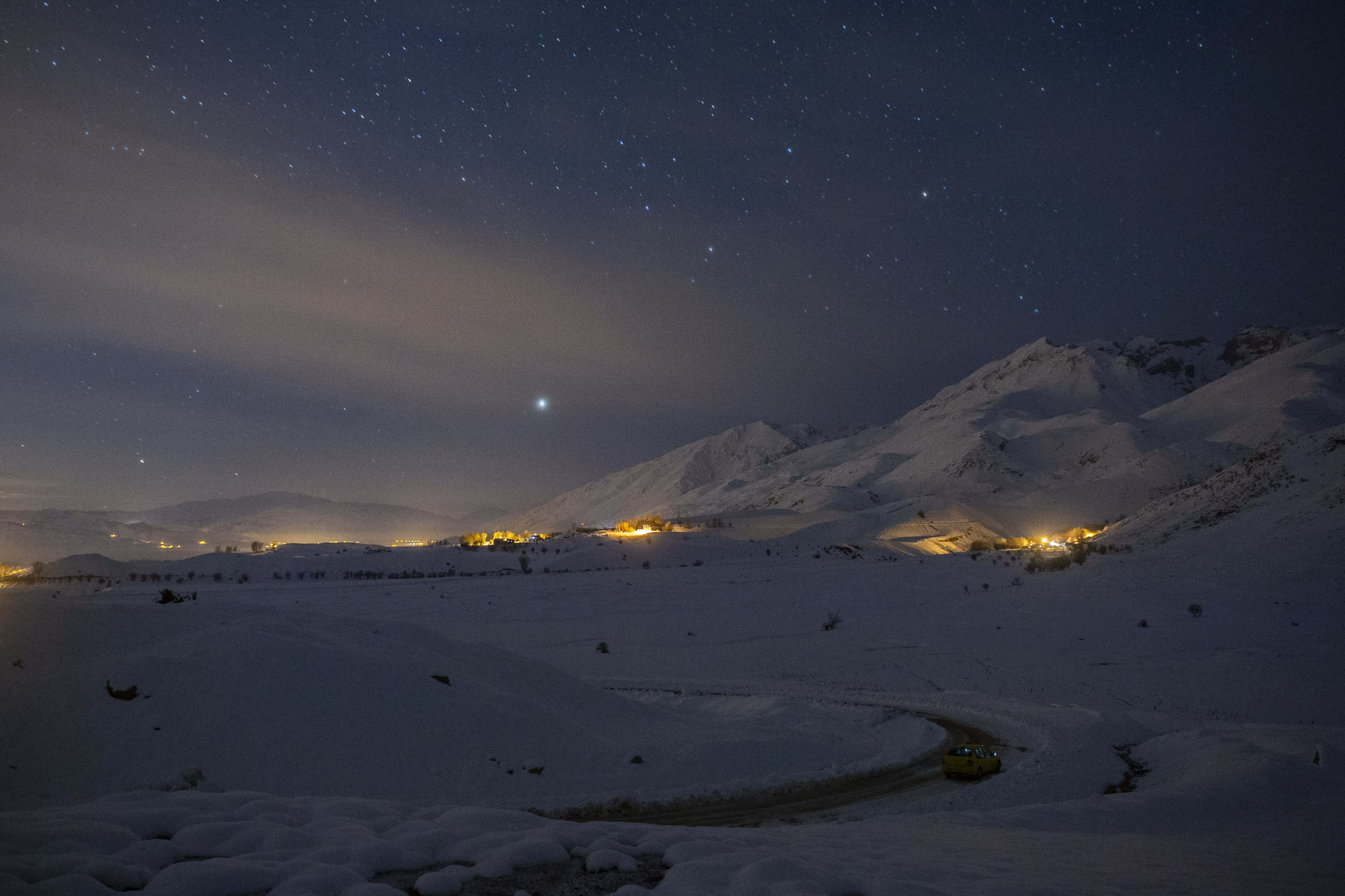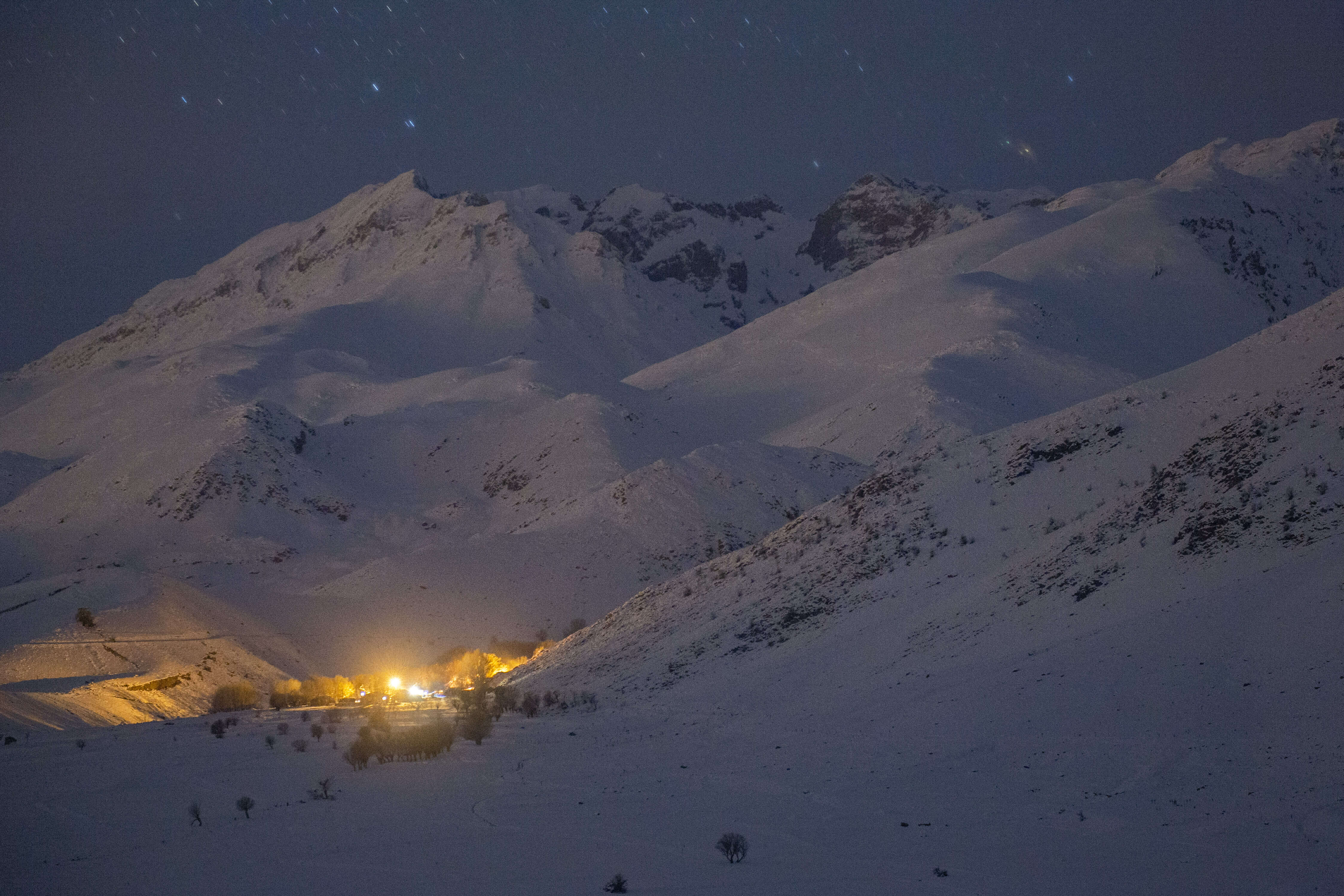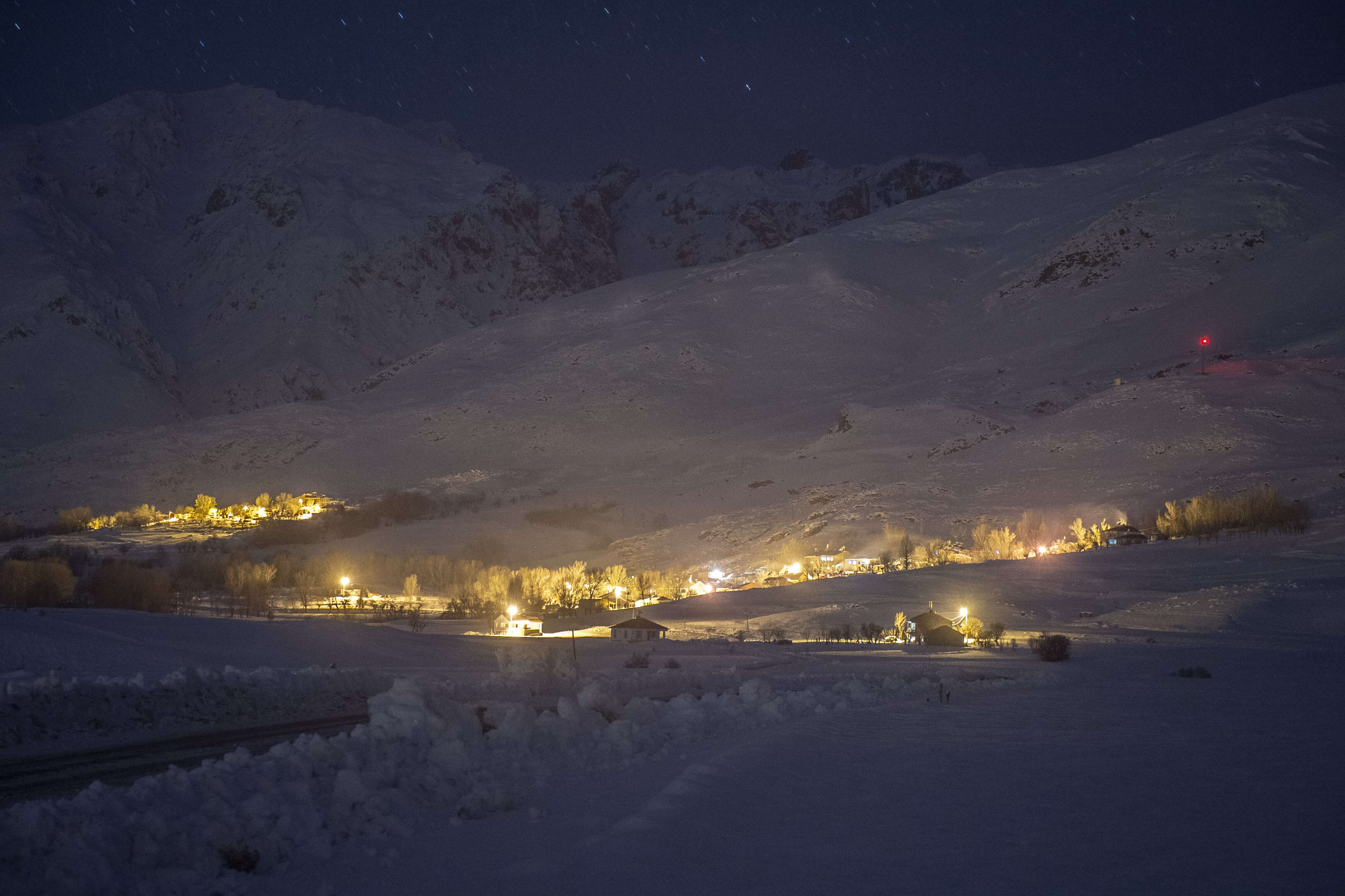 Beyaz örtüyle kaplanan Ovacık'ta gece güzelliği