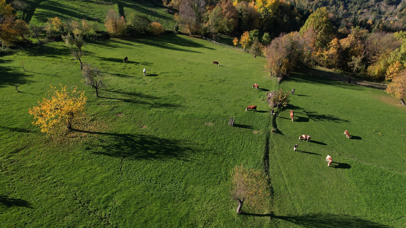 Sonbaharda tabiat parkını ziyaret edenler, yürüyüş parkurlarında gezinti yaparak, yeşil çayırların etrafını saran, renk değiştiren ağaçları ve dağları görüntülemenin keyfini yaşıyor.