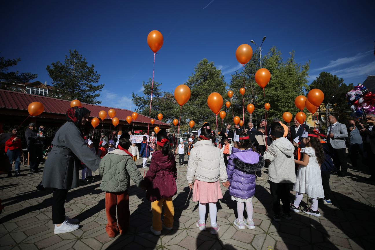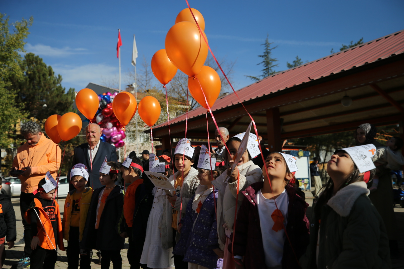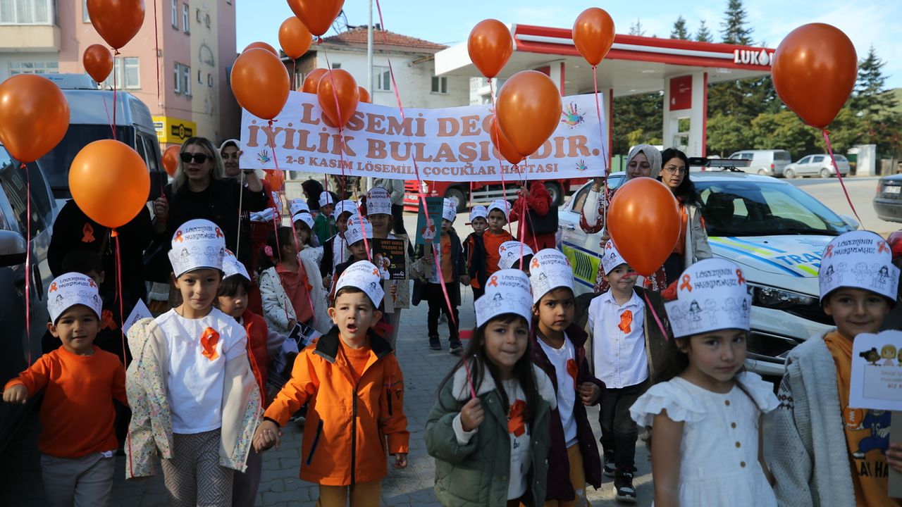 Kaymakam Bulut, ana sınıfına giden öğrencilerle lösemili çocuklar için farkındalık etkinliği düzenlendiğini belirterek, "Etkinliğe iki sınıfımız katıldı. 35 çocuğumuz mektuplarıyla, iyi dilekleriyle göklere balonlarını uçurdular. Bizler de çocuklarımıza destek olmak ve bu farkındalık eğitimine ses getirmek için burada bulunduk." dedi.