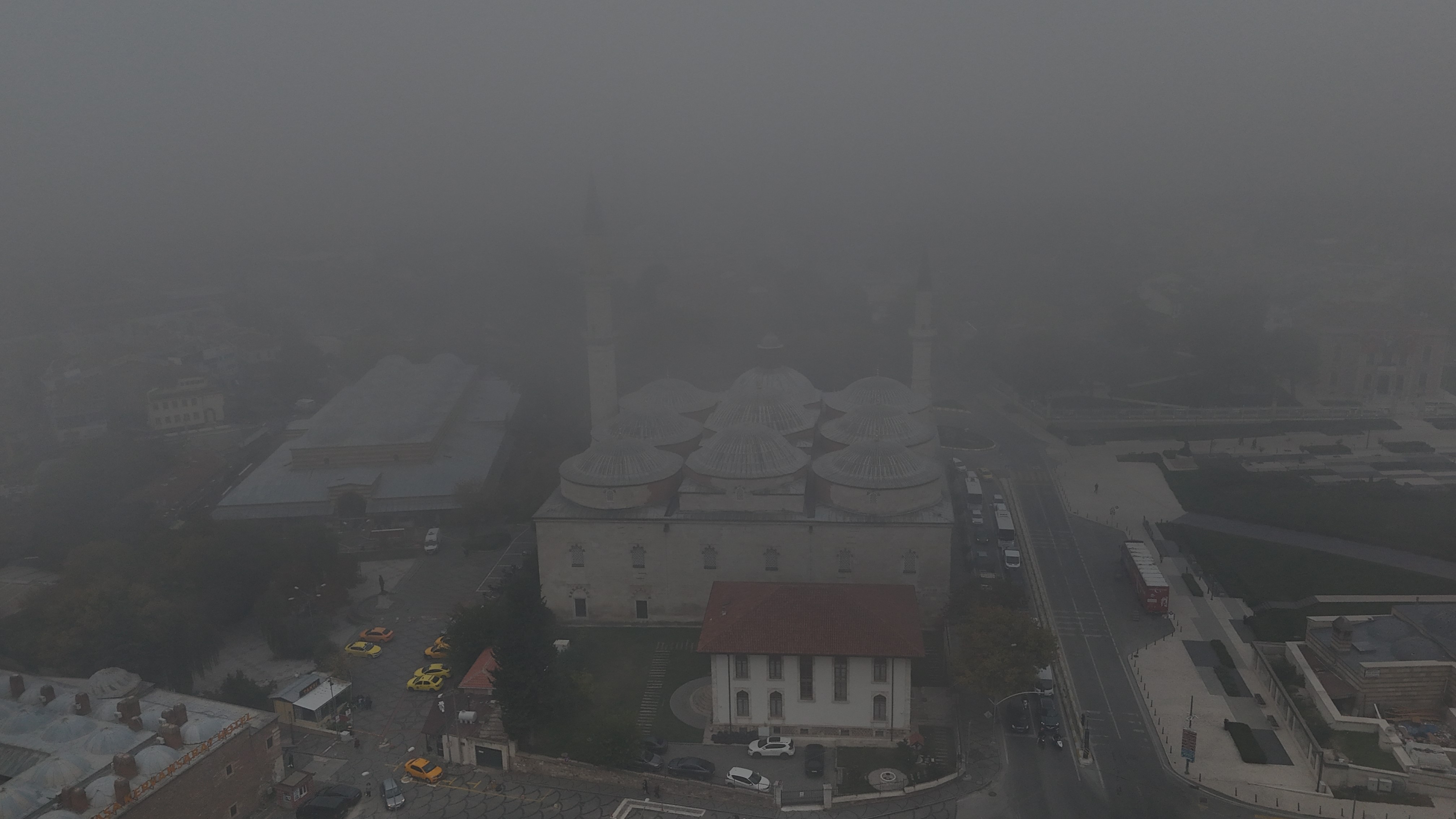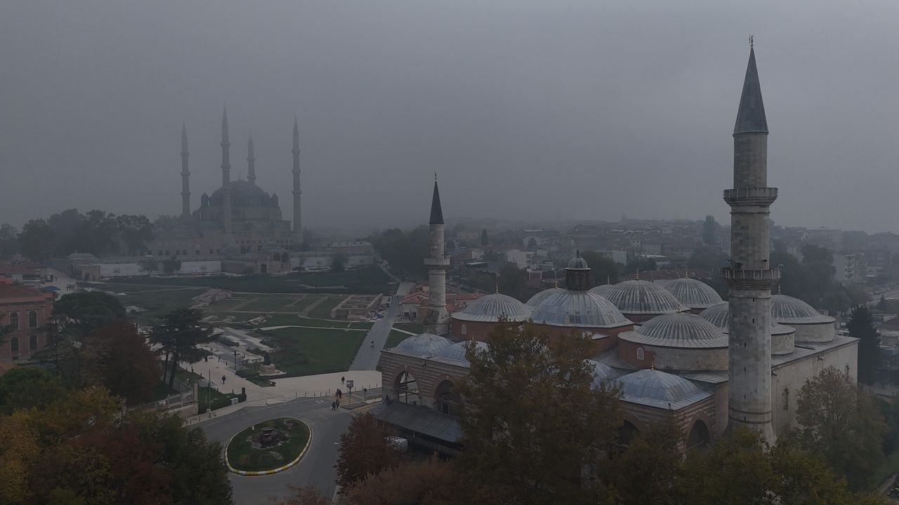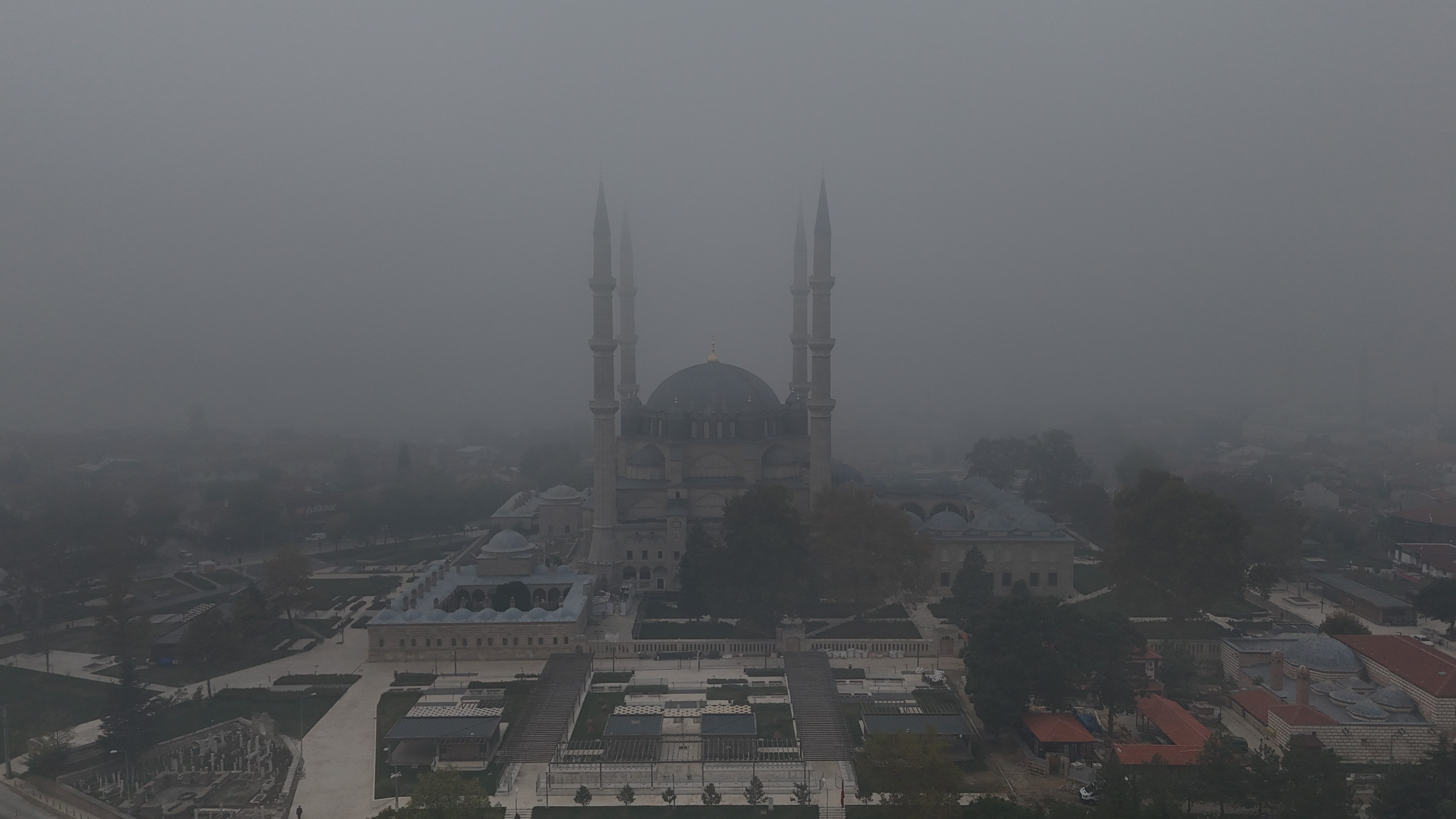 Kentin simgesi Selimiye Camisi başta olmak üzere birçok tarihi eser sis bulutları arasında kayboldu.