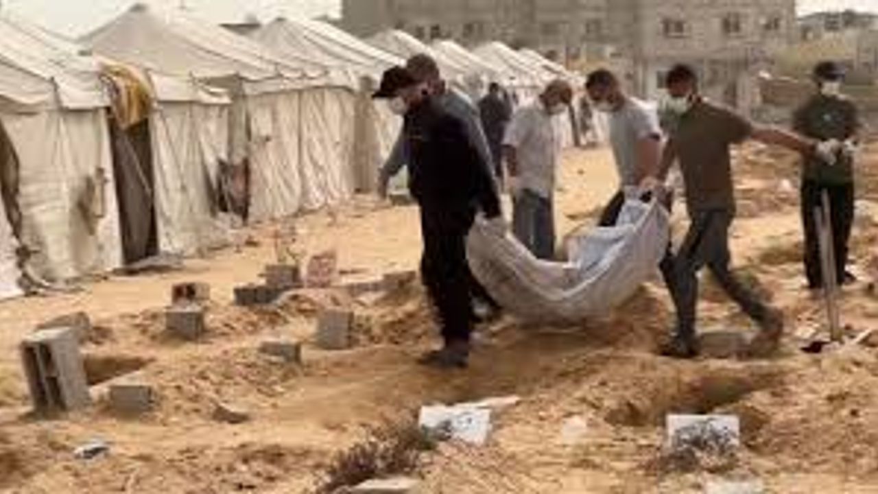 Gazze'de İsrail'in yoğun bombardımanı sürerken mezarlıklara ulaşamayan Filistinliler kaybettikleri yakınlarını geçici olarak okulların ve hastanelerin bahçelerine defnetmek zorunda kaldı.