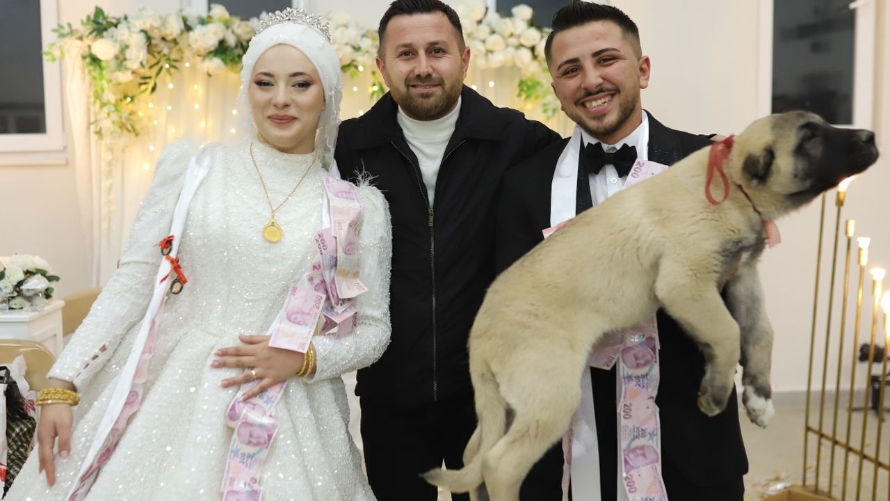 Damat Akçümen, yaptığı açıklamada, düğünde takı merasimine geçildiği sırada yavru köpeği görünce çok şaşırdığını söyledi.