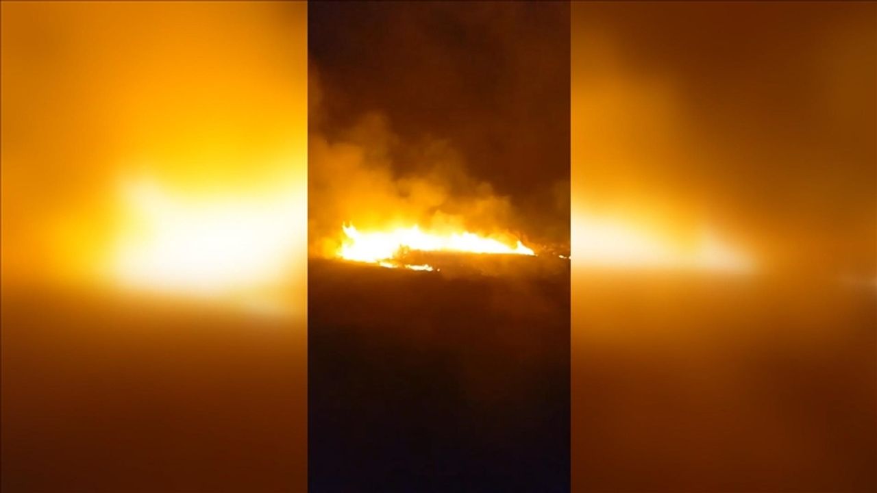 Rüzgarın da etkisiyle geniş alana yayılan yangının kontrol altına alınması için ekipler çalışmalarını sürdürüyor.