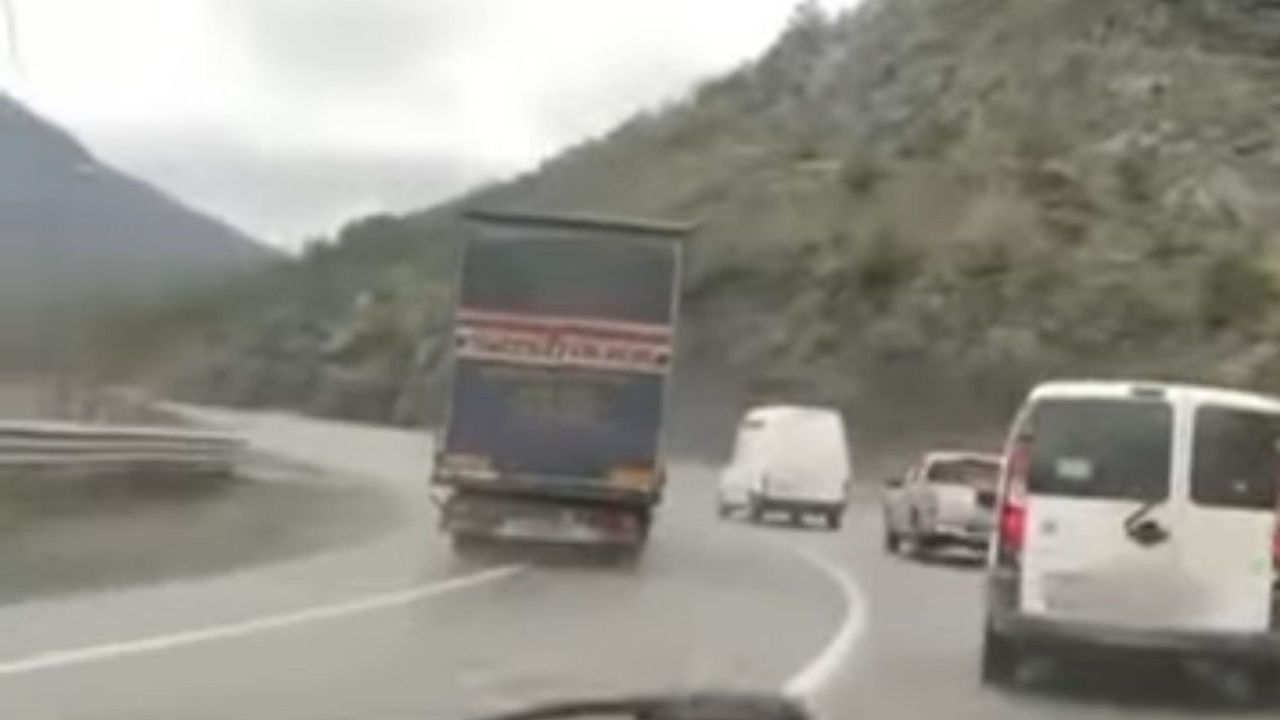 Artvin'de hatalı sollama yaparak trafiği tehlikeye düşüren tır sürücüsüne trafik cezası uygulandı.