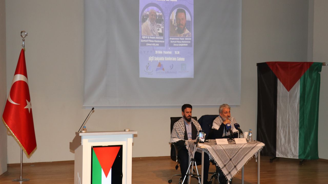 İyilik Öncüleri Kulübü ve İyilik Derneğince, Ağrı İbrahim Çeçen Üniversitesi Kültür ve Kongre Merkezi'nde Gazze'ye insani yardım için yola çıkan Küresel Sumud Filosu’nda bulunan aktivist Aslan ve Daşkıran'ın katılımıyla "Gazze'de Direnişin Adı Sumud'un Ruhu Konferansı" yapıldı.