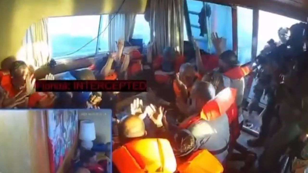 Filo’nun internet sitesinden aktarılan canlı yayında, Captain Nikos gemisindeki aktivistlerin alıkonulmasının ardından silahlı İsrail askerlerinin gemiye girdiği anlar paylaşıldı.