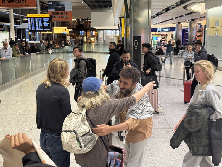 LONDRA(AA)-İsrail'in, Gazze'ye insani yardım götürmek için yola çıkan Küresel Sumud Filosu'na yaptığı saldırıda alıkonduktan sonra dün Türkiye'ye sınır dışı edilen 4 İngiliz, Türk Hava Yolları'nın tarifeli uçağıyla Londra'ya geldi.