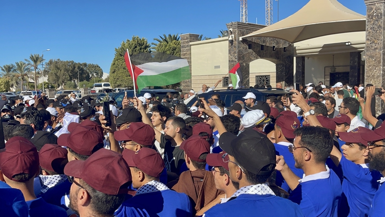 (AA)- Ulusal Birlik Hükümetinin tahsis ettiği özel uçakla Mitiga Uluslararası Havalimanı’na ulaşan aktivistleri Libya Gençlik Bakanı Fethullah ez-Zuni ve Filistin'in Trablus Büyükelçisi Muhammed Rahhal karşıladı.