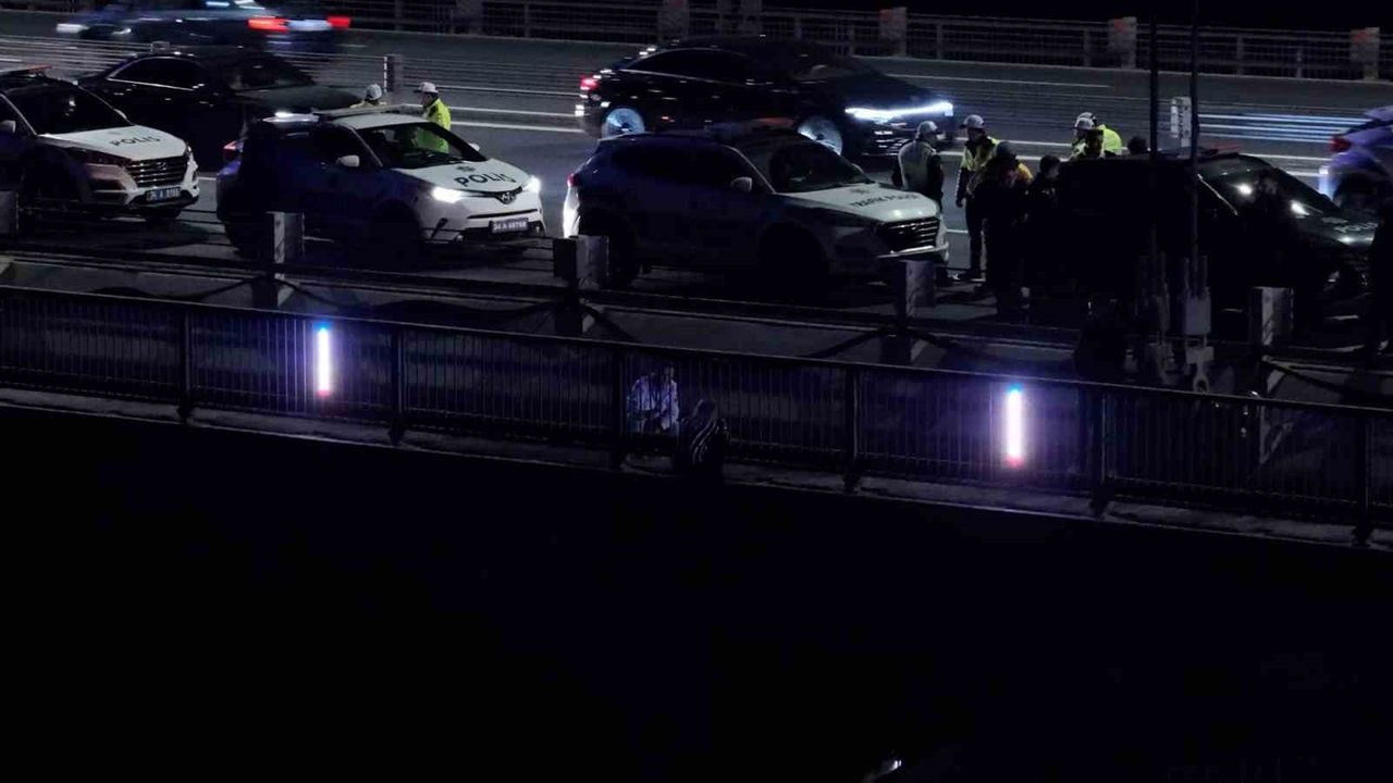 İSTANBUL(İHA)-Avrupa ve Asya Kıtalarını birbirine bağlayan Fatih Sultan Mehmet Köprüsü üzerinde gece saatlerinde bir kadın intihar etme girişiminde bulundu. Köprüsünün ortasında taksiden inen kadın için olay yerine Köprü Koruma Polisleri geldi. Daha sonra kadının ikna edilmesi için olay yerine müzakereci polis çağrıldı. İntihar etmek isteyen kadının yanında duran müzakereci polis sigarasını yakması için kadına çakmağını verdi. Müzakereci polis, atlamak isteyen kadınla uzun süre konuştu. Polisin yaklaşık 1,5 saat süren ikna çabalarının ardından kadın intihar etmekten vazgeçti. Öte yandan intihar girişimi nedeniyle köprüde trafik oluştu. Polisin kadını ikna çabaları ve köprüde oluşan trafik havadan çekilen görüntülere yansıdı.