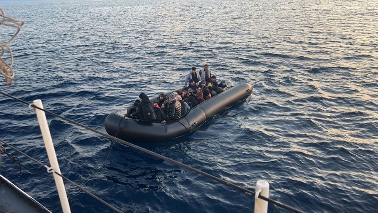 Sahil Güvenlik ekiplerince durdurulan lastik bottaki 3'ü çocuk 17 düzensiz göçmen ile ülkeyi yasa dışı yollarla terk etmeye çalışan 1 şüpheli yakalandı.