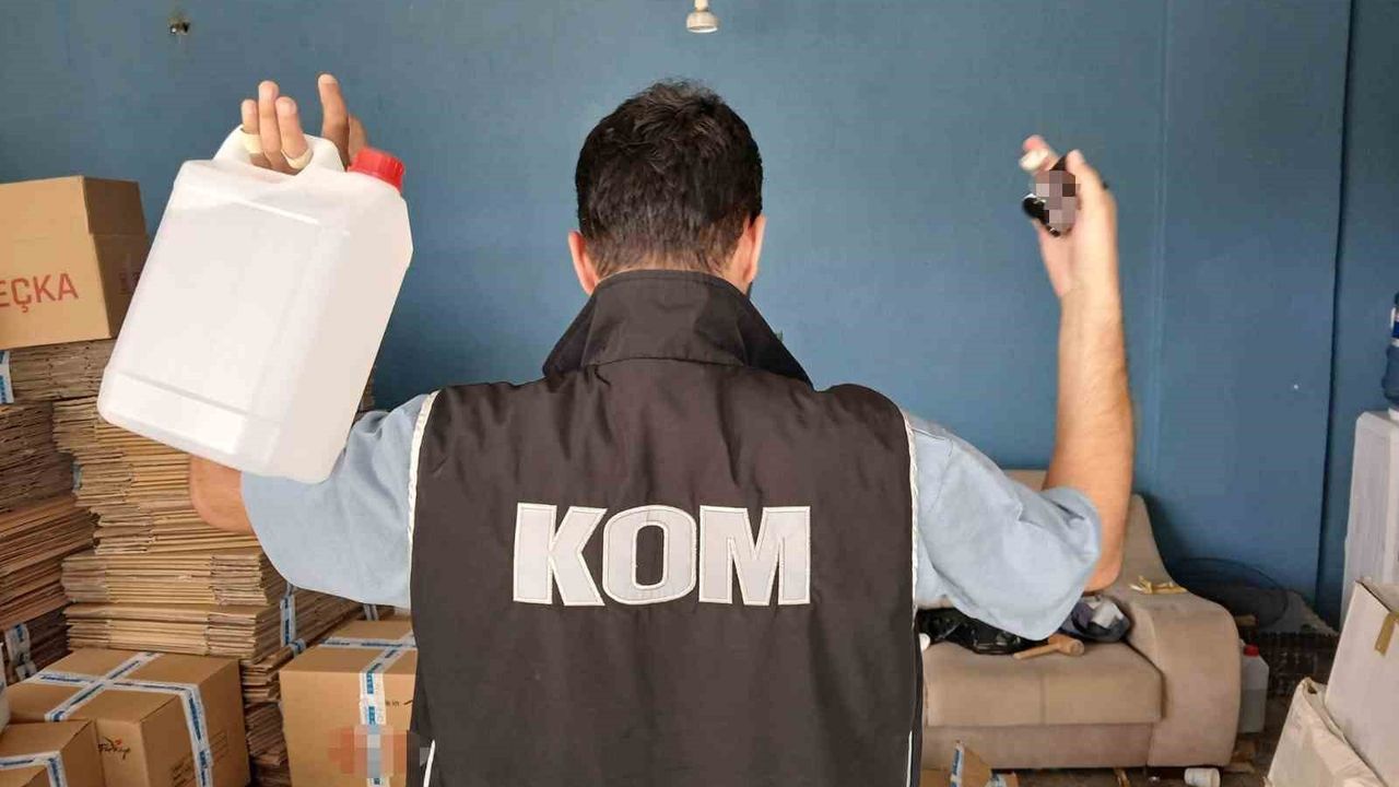 Operasyonda; 5,8 ton taklit etiketli etil alkol, 4,46 litre içki aroması, 4 bin 470 adet boş içki şişesi, 12 bin 50 adet kapak, 500 adet içki kutusu bulundu. Etil alkolün merdiven altı şartlarda üretildiği, dolum için hazırlanan şişe ve kapakların da iç piyasaya sürülmeye hazırlandığı belirlendi.