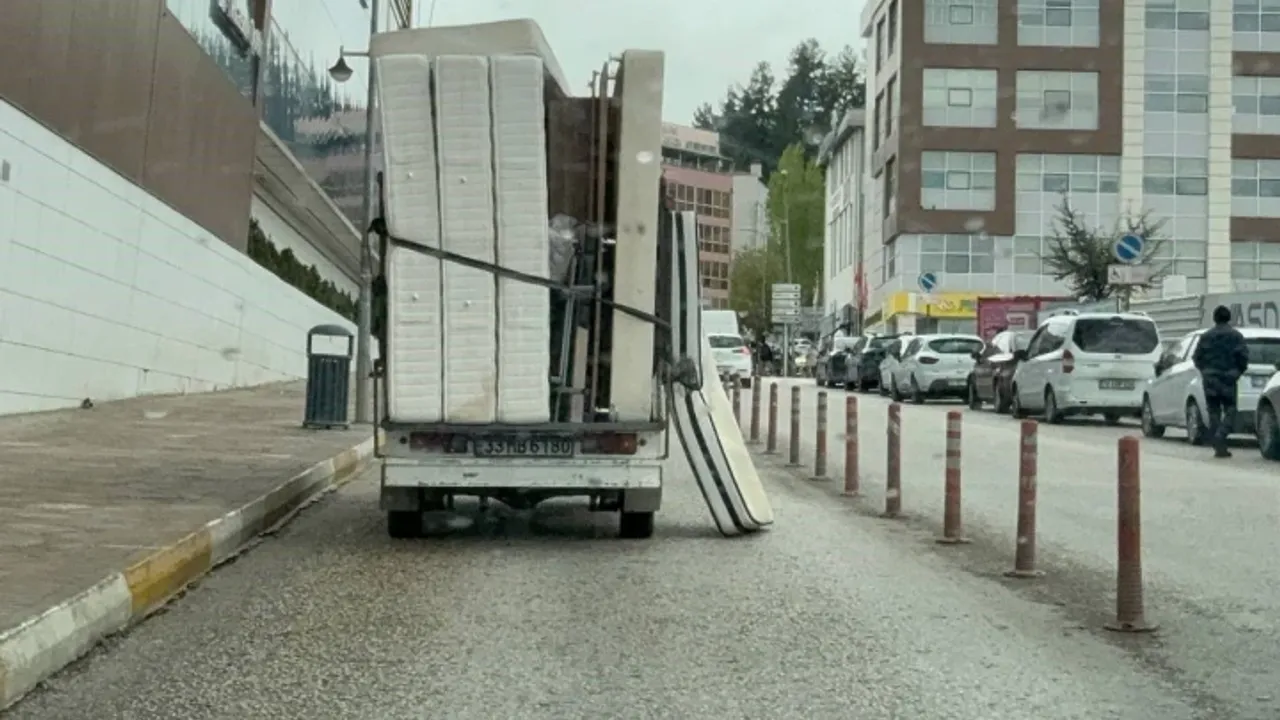 Görüntülerde, otomobilin arka kapısının tamamen açık olduğu ve içerideki yükün dışarı taşacak şekilde yerleştirildiği görülüyor. Sürücünün bu şekilde seyretmesi, trafikteki diğer araçlar için adeta kazaya davetiye çıkardı.