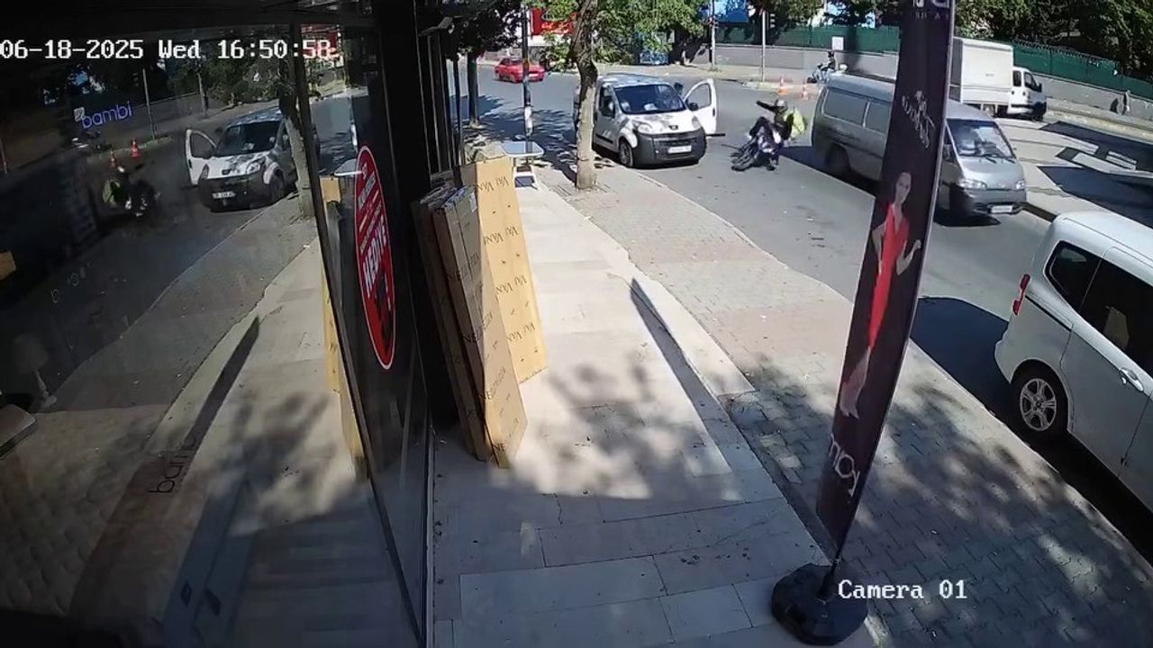 Kartal’da seyir halinde olan motosiklet sürücüsü, yol kenarında duran aracın kapısının aniden açılmasıyla yola savrularak yaralandı. Kaza anı güvenlik kamerasına yansıdı.