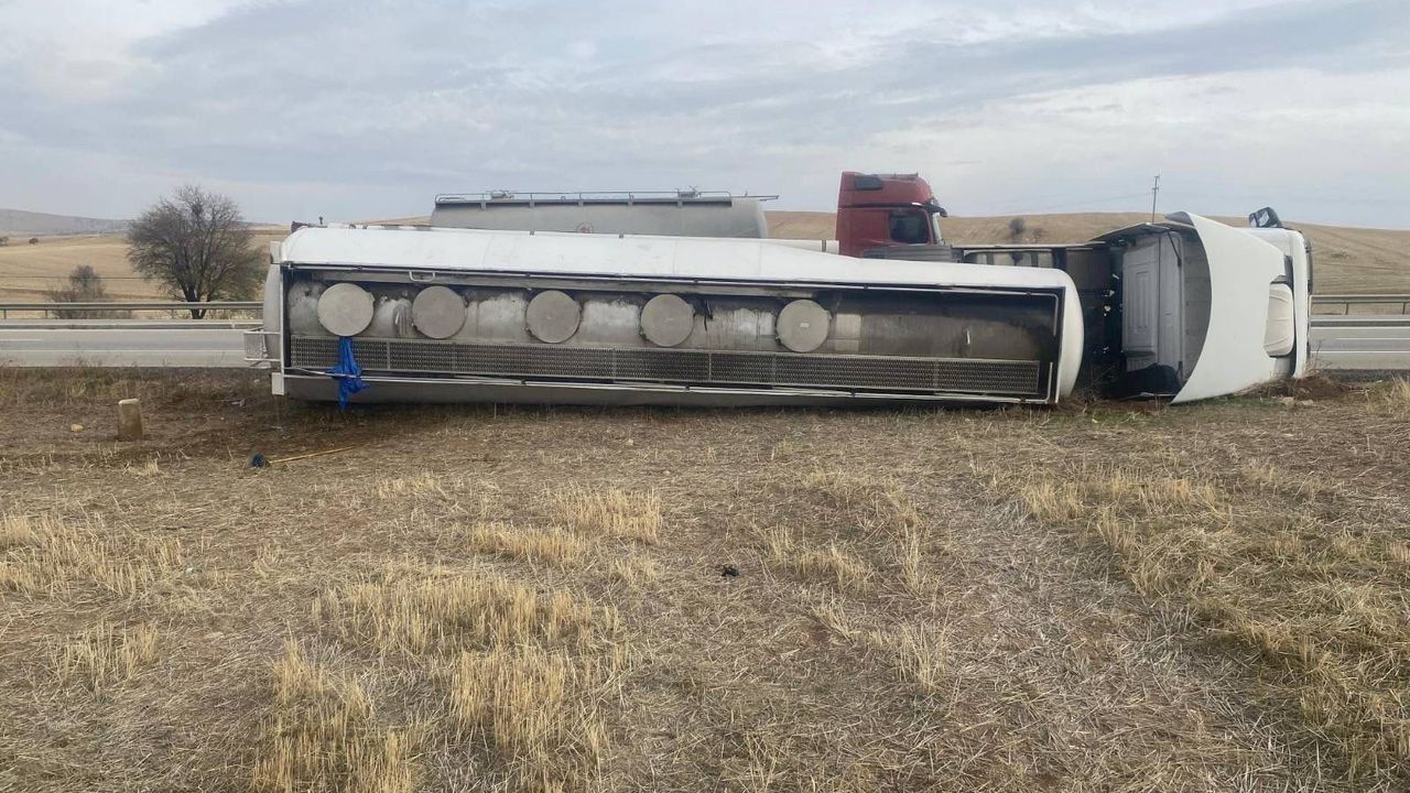 Kırıkkale’de, kontrolden çıkan akaryakıt tankerinin şarampole devrilmesi sonucu sürücü yaralandı.