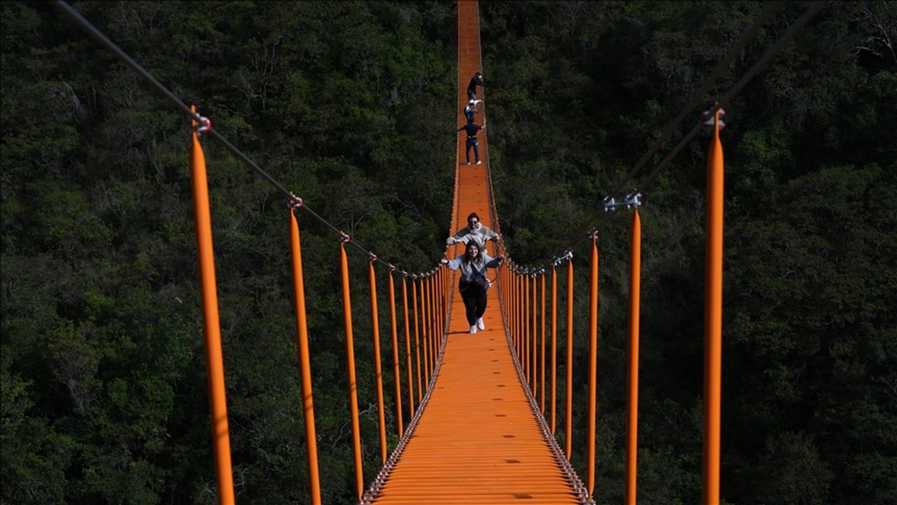 BOYACA(AA)-Boyaca yönetim bölgesine bağlı Santa Sofia kasabasında, El Hayal Ekolojik Parkı'nın kalbinde yer alan bu devasa asma köprüler, hem mühendisliğiyle hem de manzarasıyla ziyaretçilerin ilgisini çekiyor.