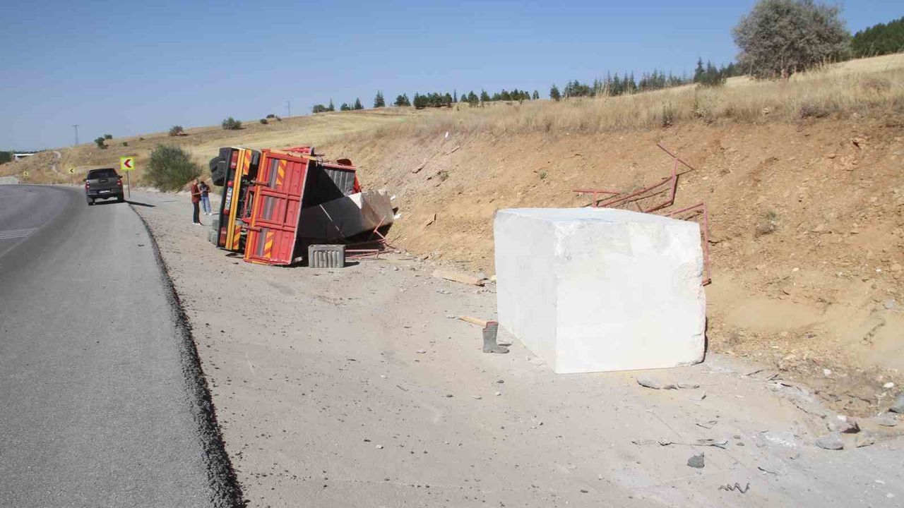 (İHA) - Edinilen bilgiye göre, Beyşehir-Antalya Çevreyolu’nda Seydişehir yönüne seyir eden Y.K. idaresindeki 42 B 2940 plakalı mermer yüklü tır kontrolden çıkarak devrildi. Yan yatan tırdaki mermer bloklar yol kenarına savrulurken, yaralanan sürücü ambulansla kaldırıldığı Beyşehir Devlet Hastanesinde tedavi altına alındı.