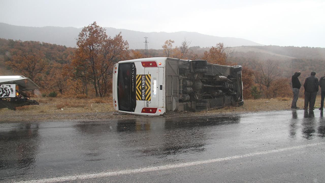 Huğlu Mahallesi'nden öğrencileri Beyşehir'e götüren Durmuş K. idaresindeki öğrenci servisi, Kayabaşı Mahallesi yakınlarında şarampole devrildi.