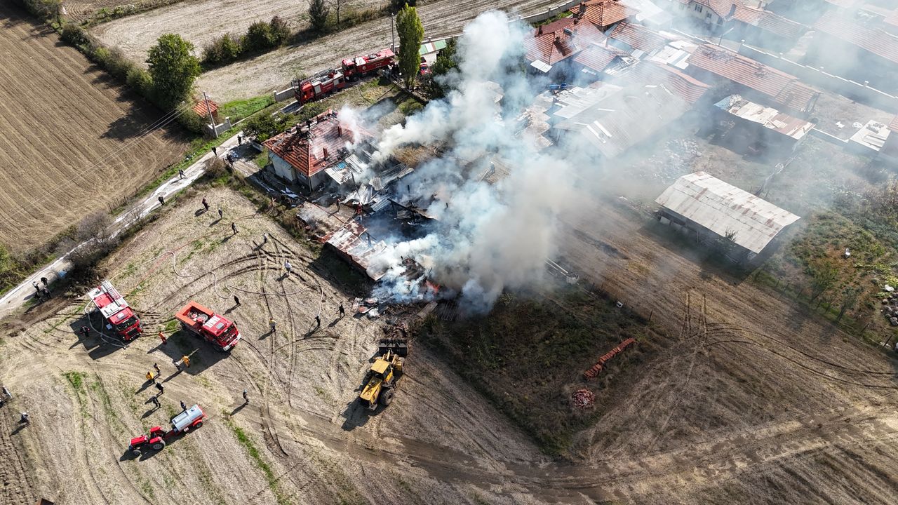 Alevler, ev ile bahçesinde bulunan traktör ve motosiklete sıçradı.